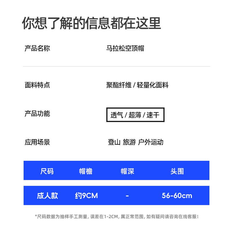专业马拉松跑步帽子防晒吸汗速干空顶帽登山徒步运动超轻遮阳帽子