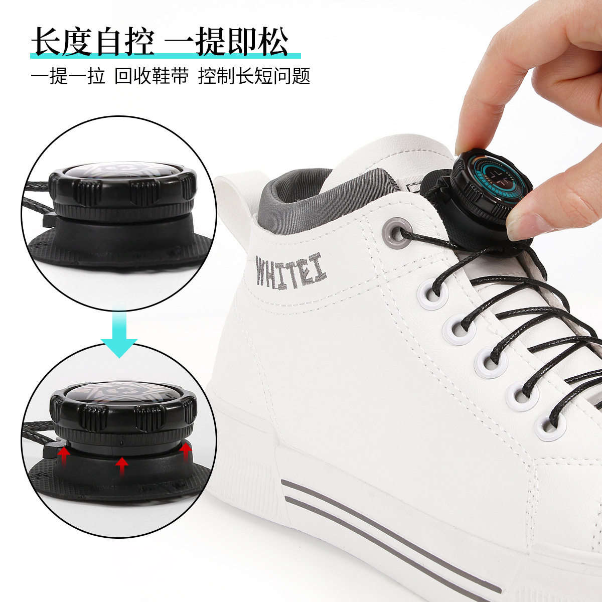 旋转纽扣鞋带懒人免系免绑运动跑鞋黑白色粗鞋带绳旋钮鞋扣
