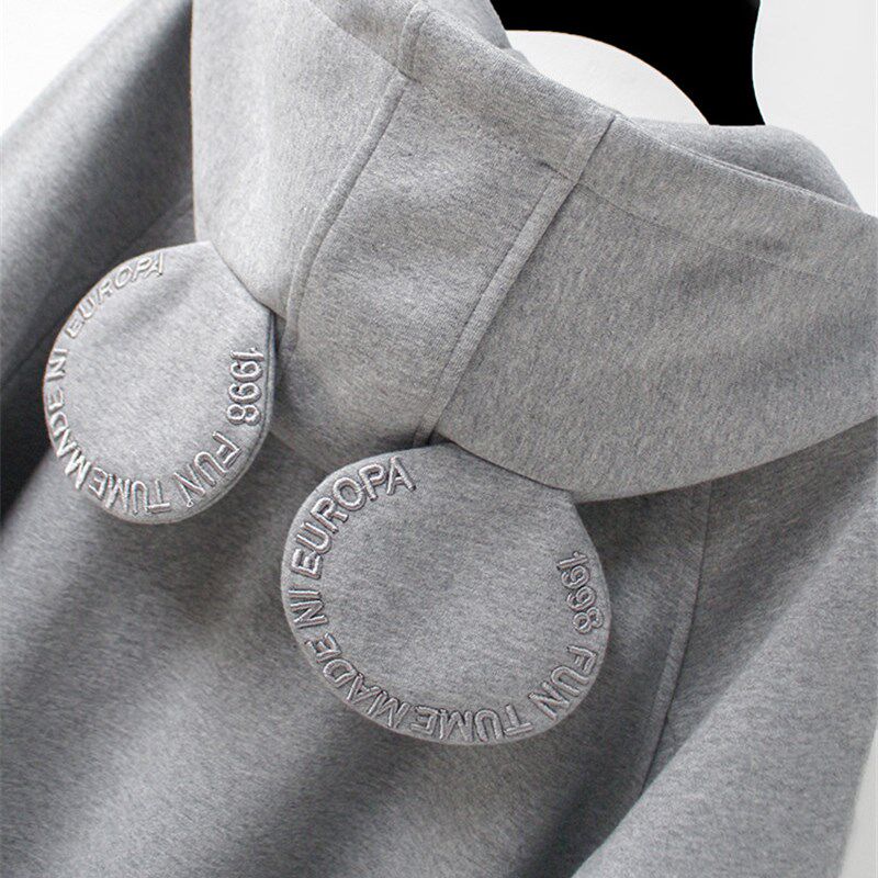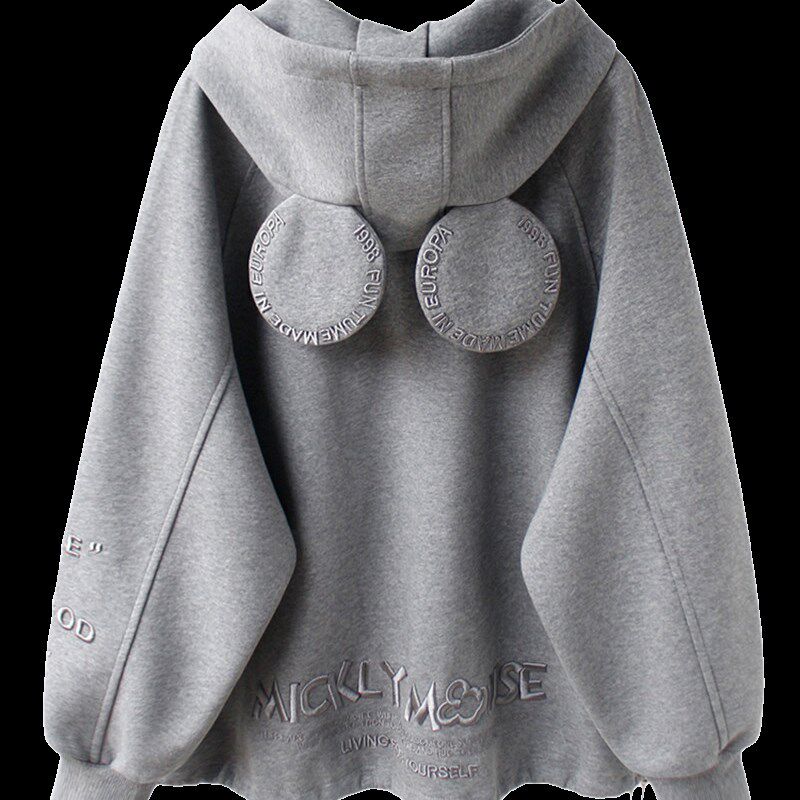 秋冬新款连帽开衫女款厚T恤2022宽松中长版加绒加厚上衣外套春秋