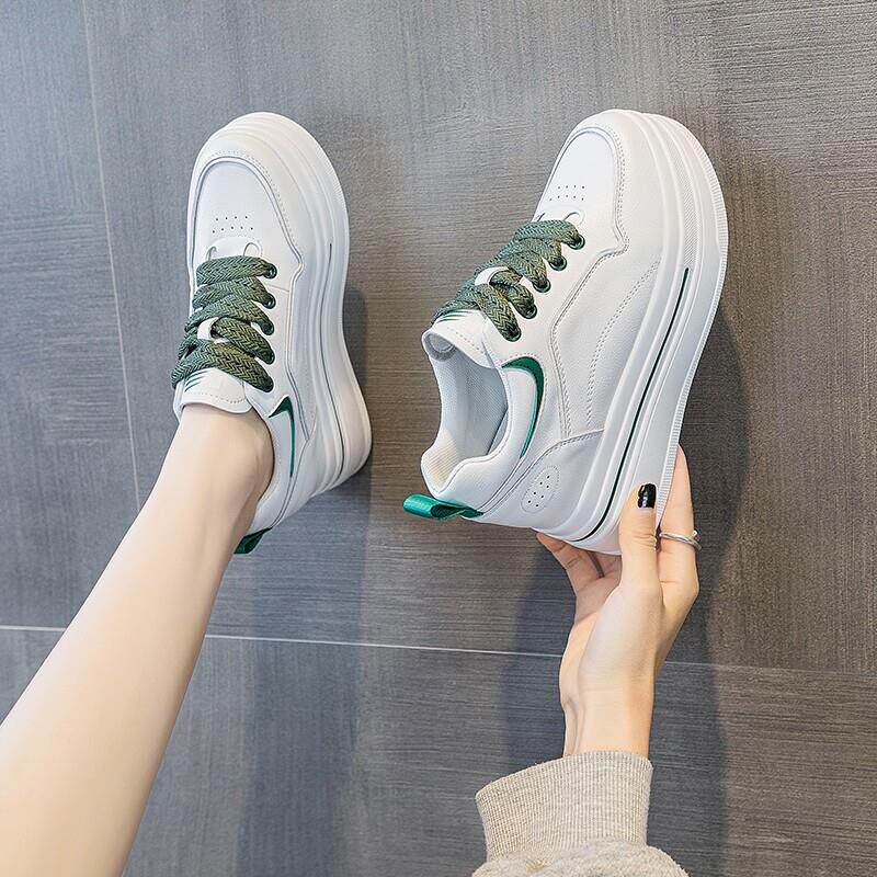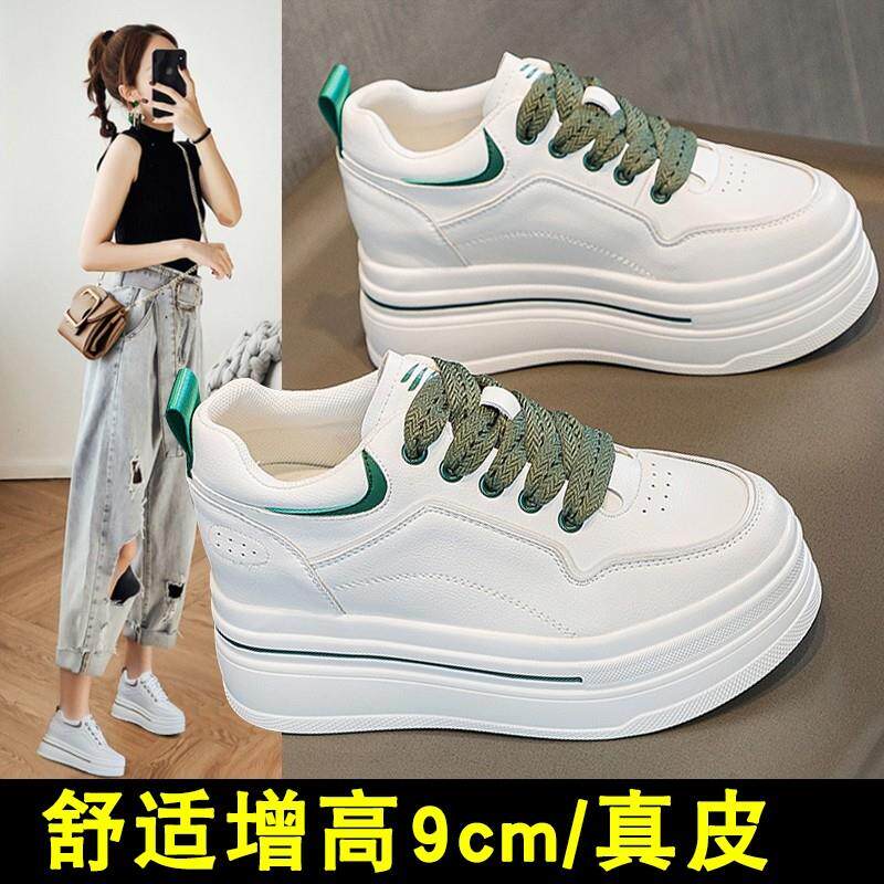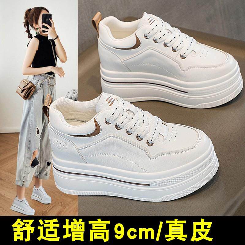 内增高女鞋2026新款真皮厚底小个子搭配裙子的鞋子休闲运动小白鞋