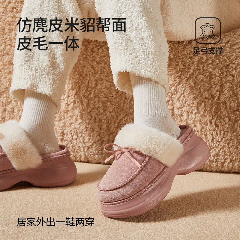 朴西增高棉拖鞋清仓2025新款女士厚底防滑冬季家居毛绒加厚保暖