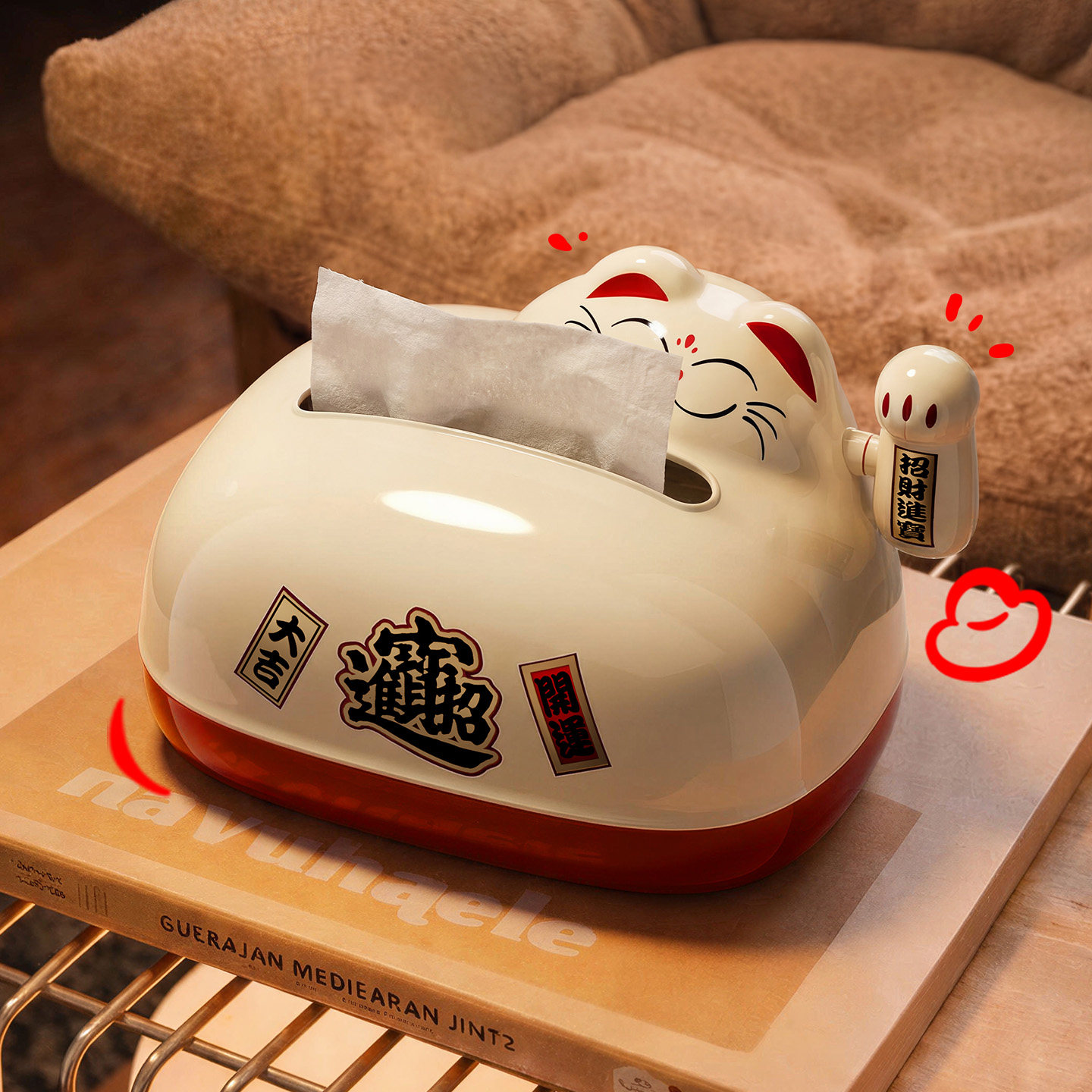 日式纸巾盒磁吸开合家用客厅茶几桌面可爱创意商铺招财猫抽纸盒