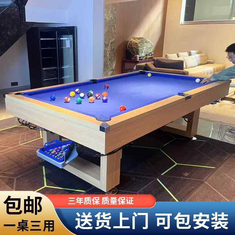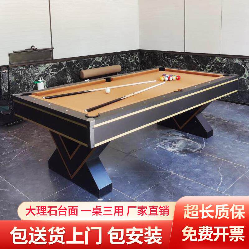 台球桌家用标准型黑八台球乒乓球二合一自动回球大理石桌球台商用