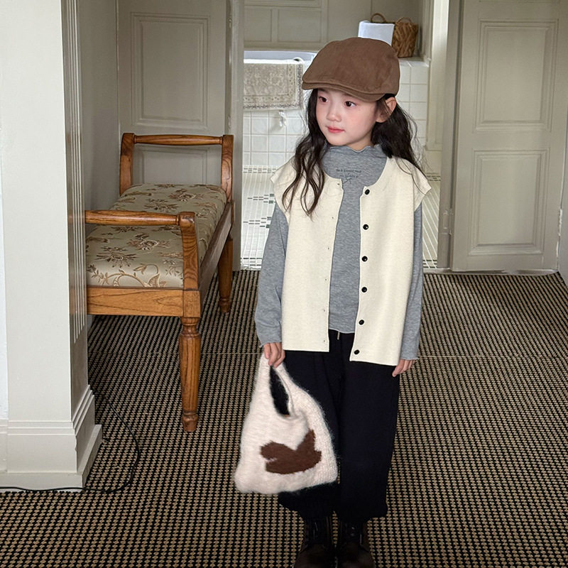 男女童针织马甲春秋新款中大童纯色叠穿坎肩百搭儿童毛衣背心开衫