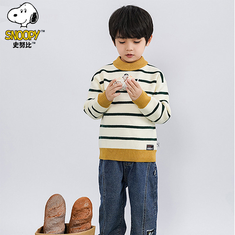 史努比儿童毛衣针织圆领条纹休闲套头针织衫内搭可外穿男女童