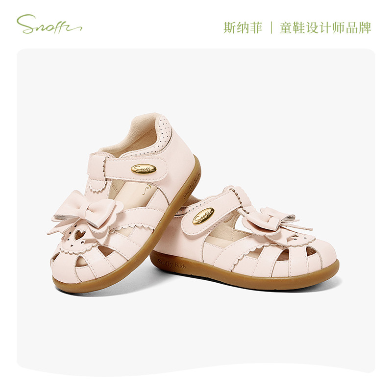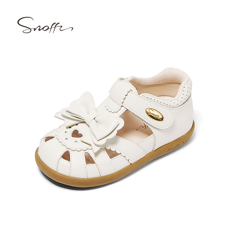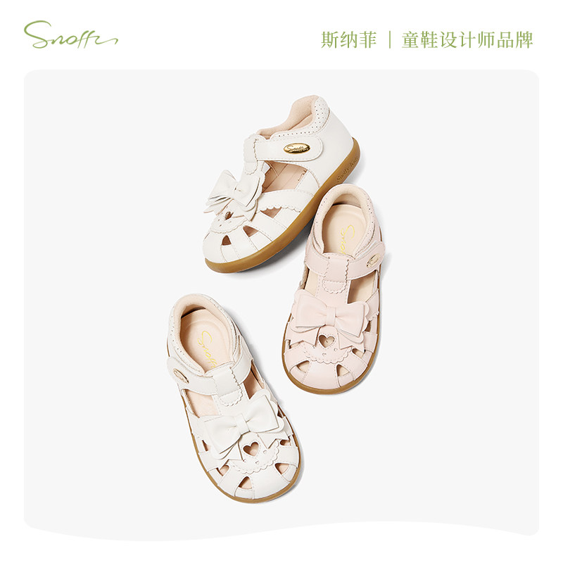 斯纳菲2025夏季新款女童凉鞋包头包跟软底公主鞋白色蝴蝶结宝宝鞋
