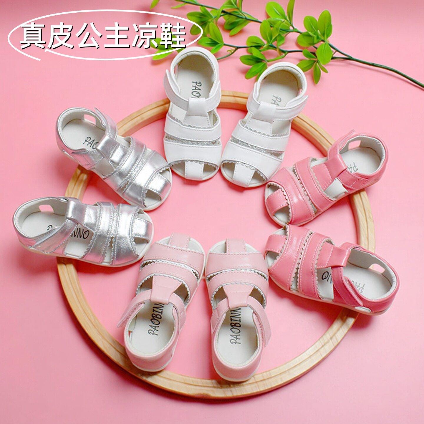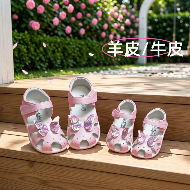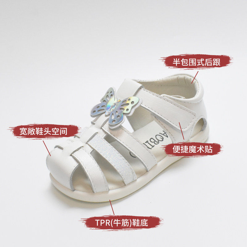 宝宝皮凉鞋包头蝴蝶魔术贴夏透气真皮包跟儿童软底女童公主鞋羊皮