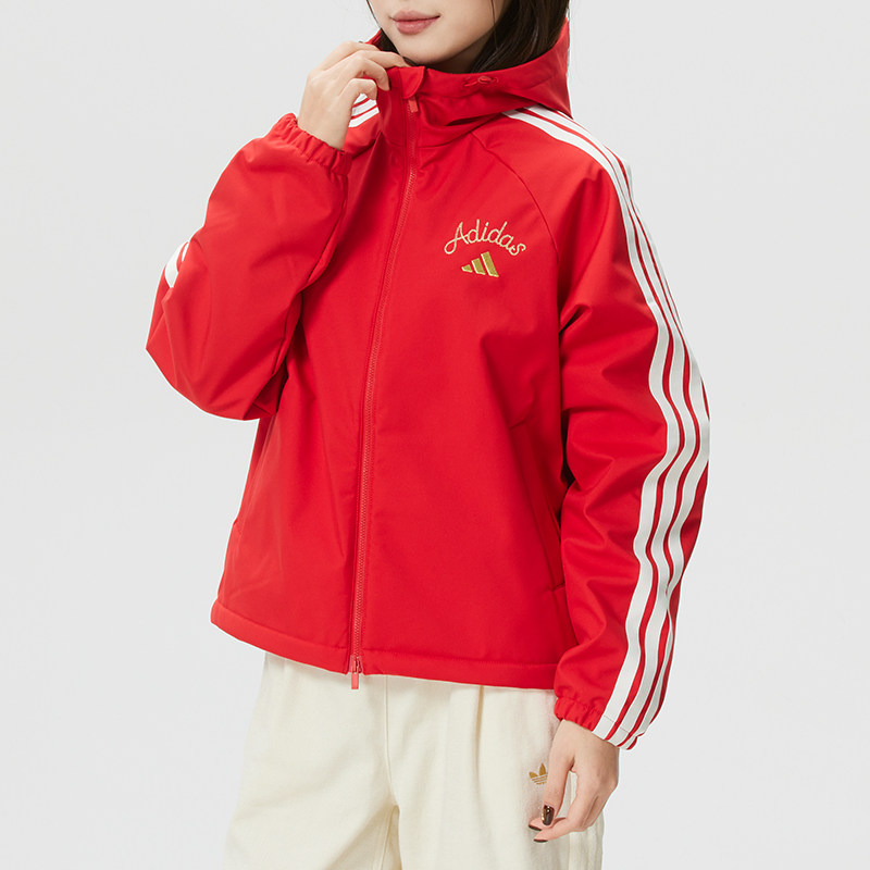 Adidas阿迪达斯红色新年款外套女款2026春节本命年保暖夹克KU8972