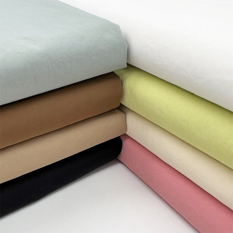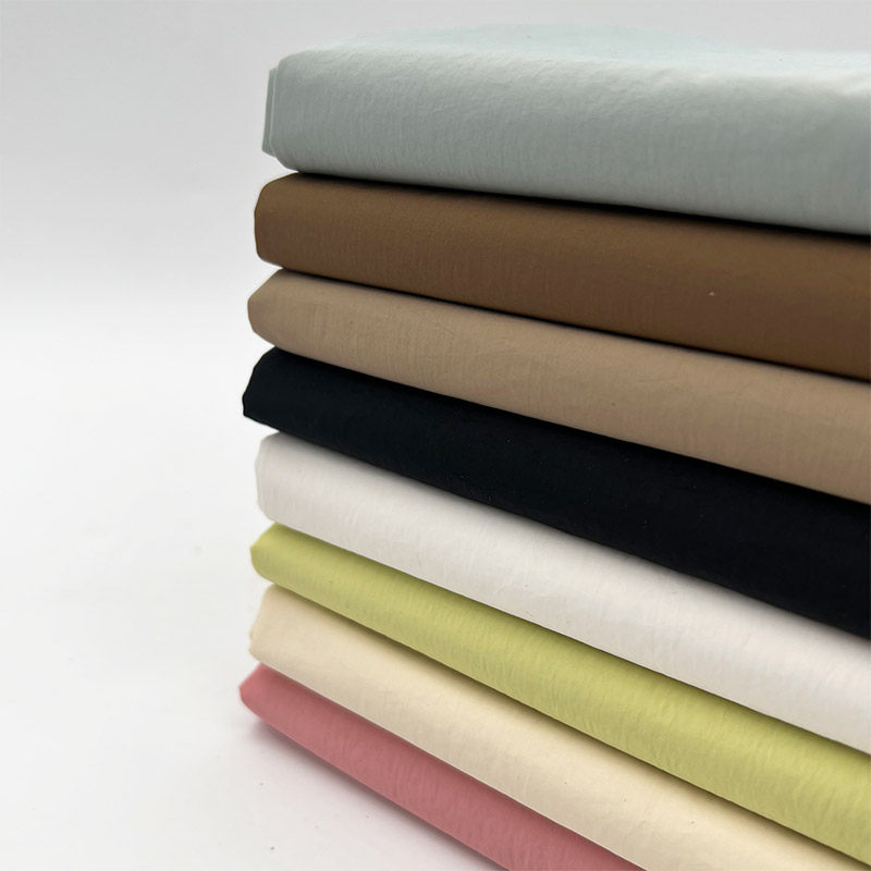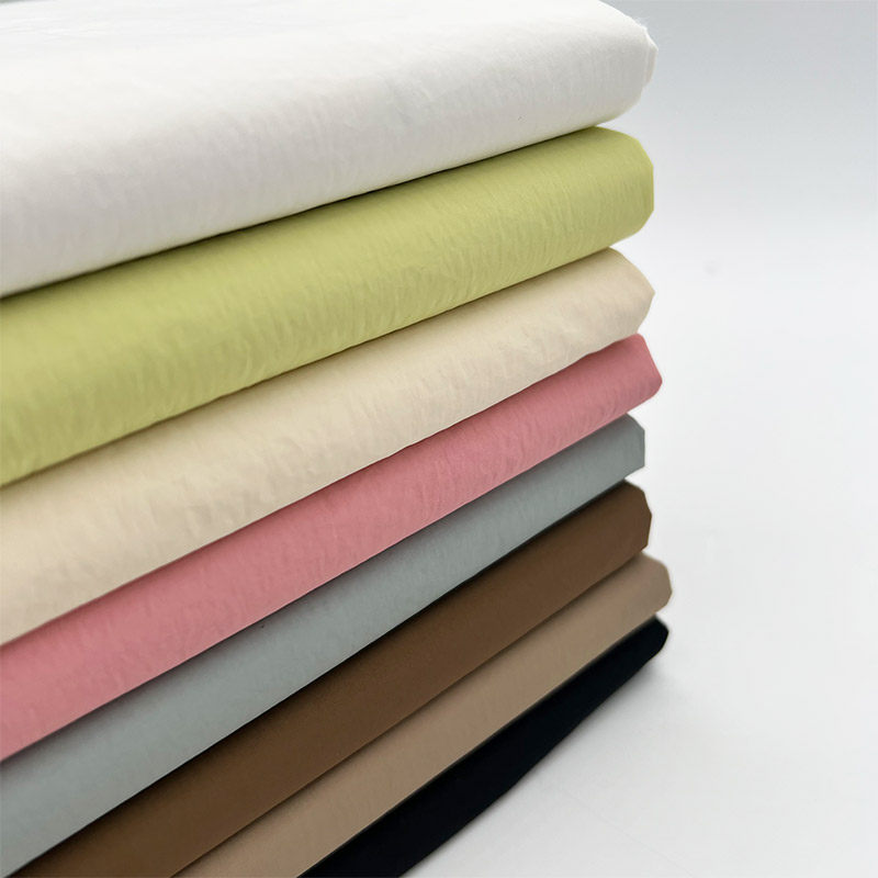新款纸感绉羽绒服布料微皱工艺秋冬薄款棉服夹克衬衫服装面料防水