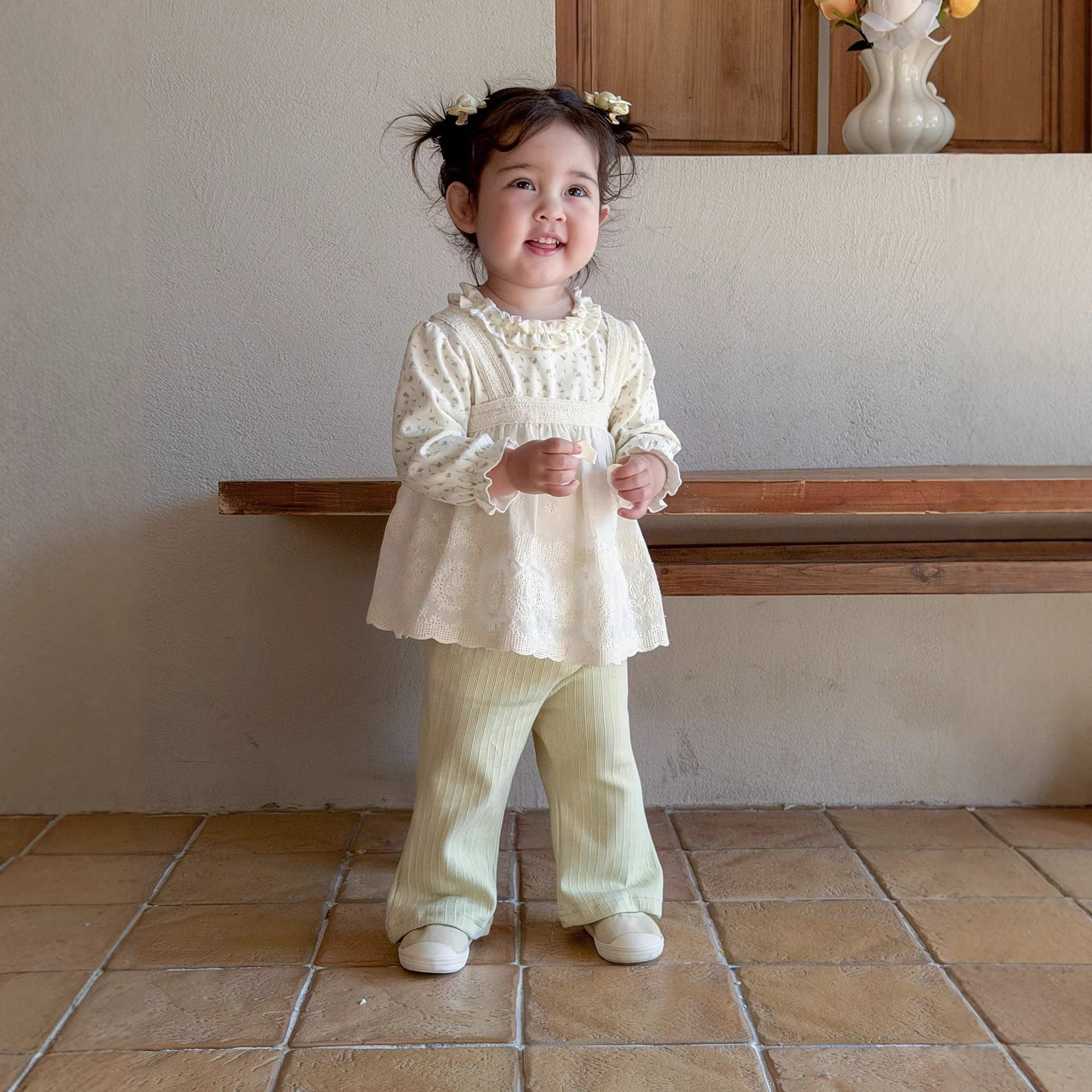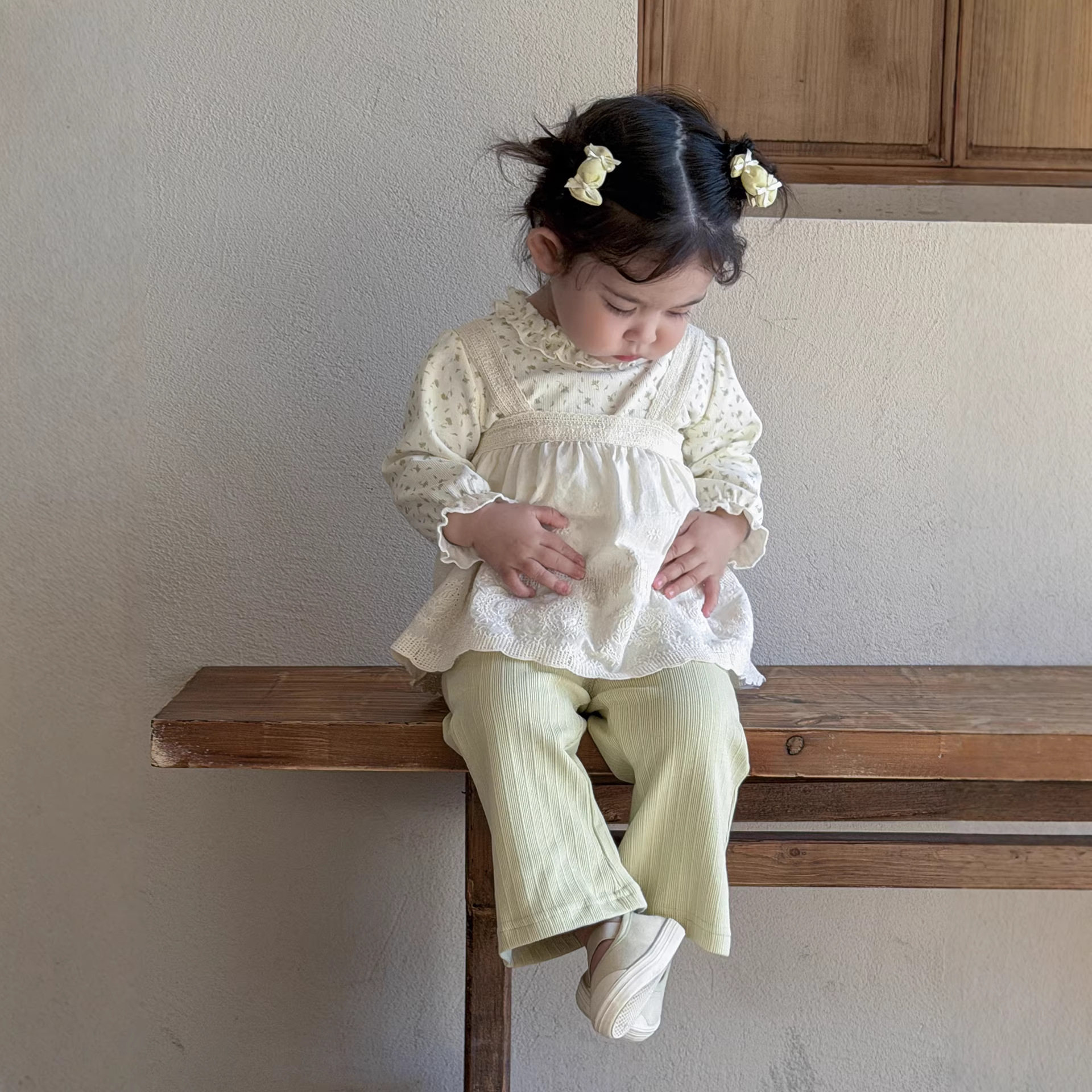 2026新款女宝宝春款套装可爱韩版女童碎花吊带裙上衣长裤三件套春