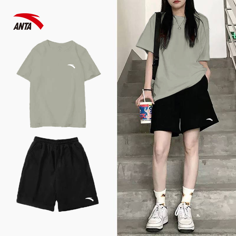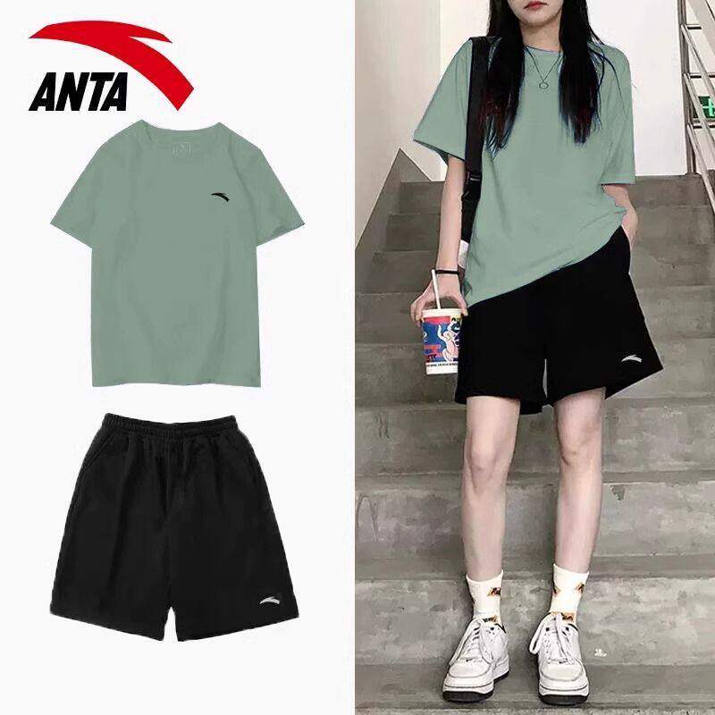 安踏速干运动套装女夏季休闲短袖短裤透气舒适体测中考t恤两件套