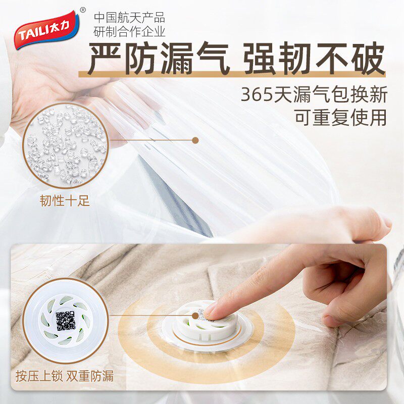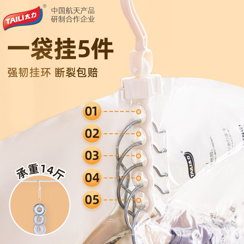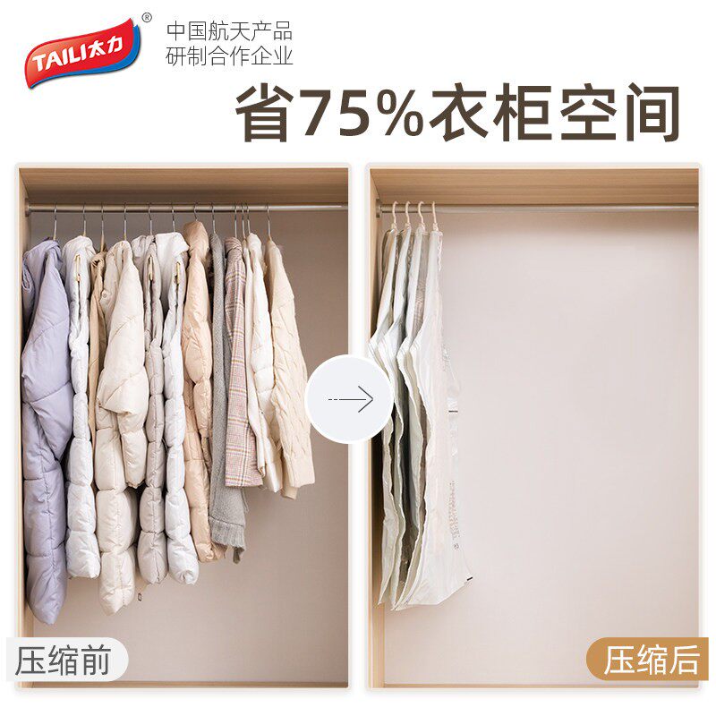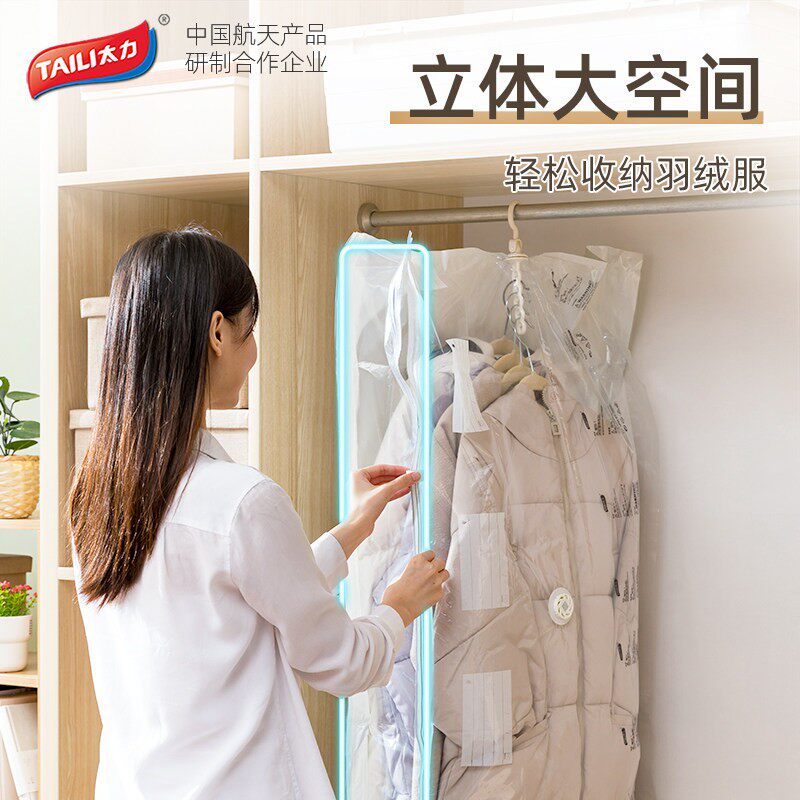 太力羽绒服收纳袋真空压缩袋挂式免抽气衣服衣物收纳袋子专用神器