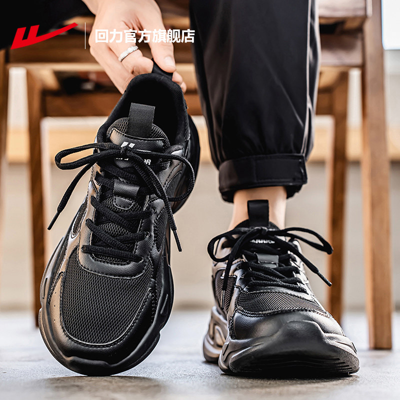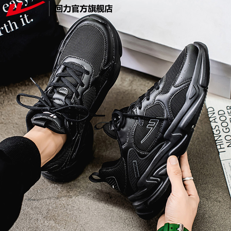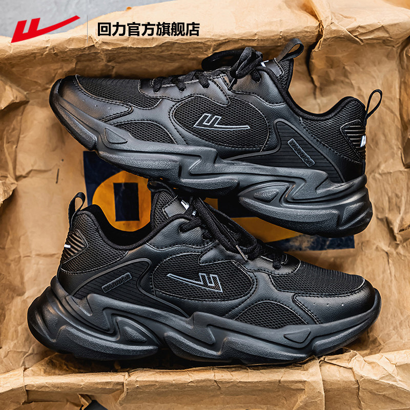311线报网描述:回力官方厚底网面新款运动鞋男款黑色老爹鞋