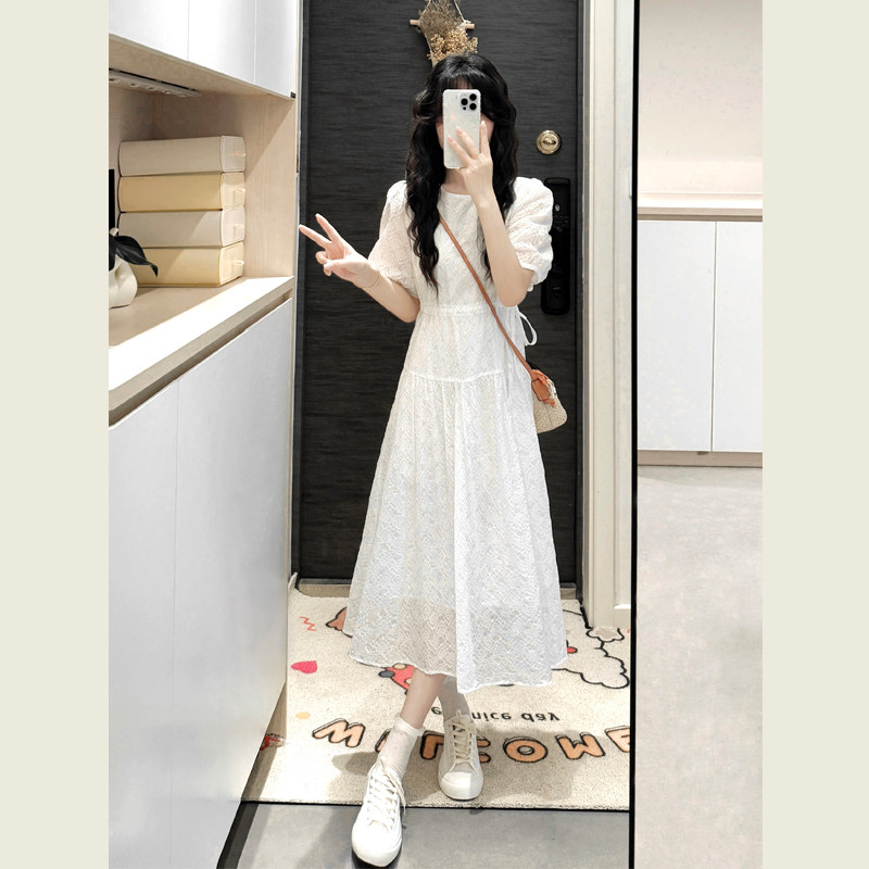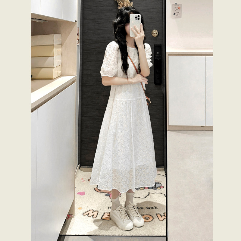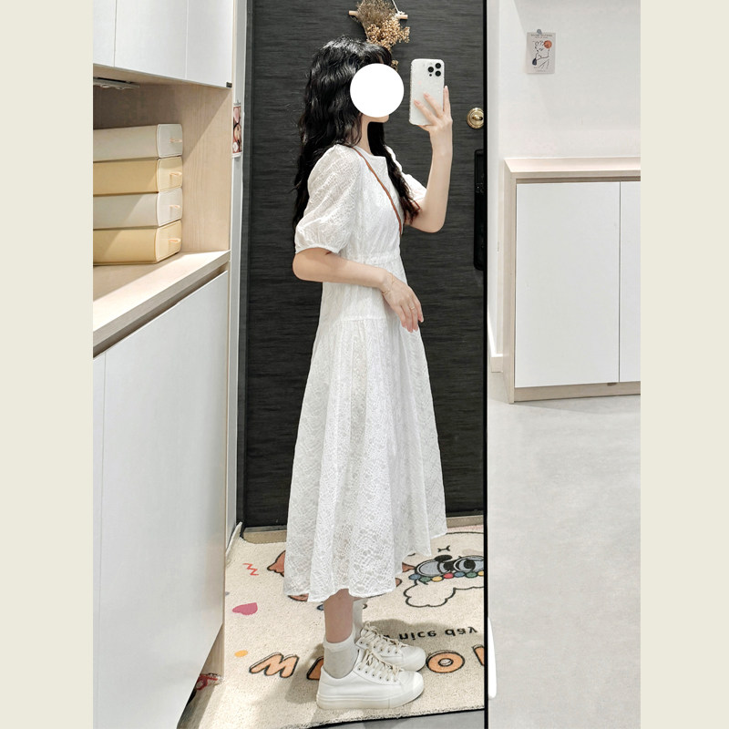 清仓!白色连衣裙女夏季收腰显瘦小个子法式茶歇长裙初恋小白裙