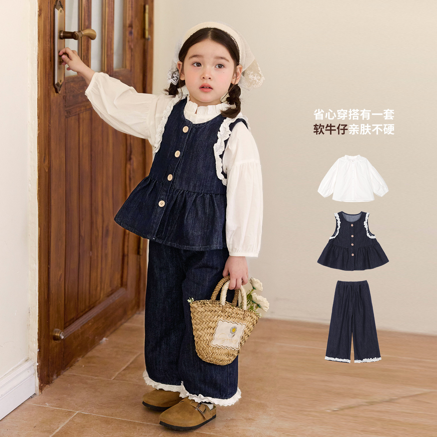 小O宝童装 宝宝森系套装女洋气时髦2026春装新款女童休闲牛仔套装