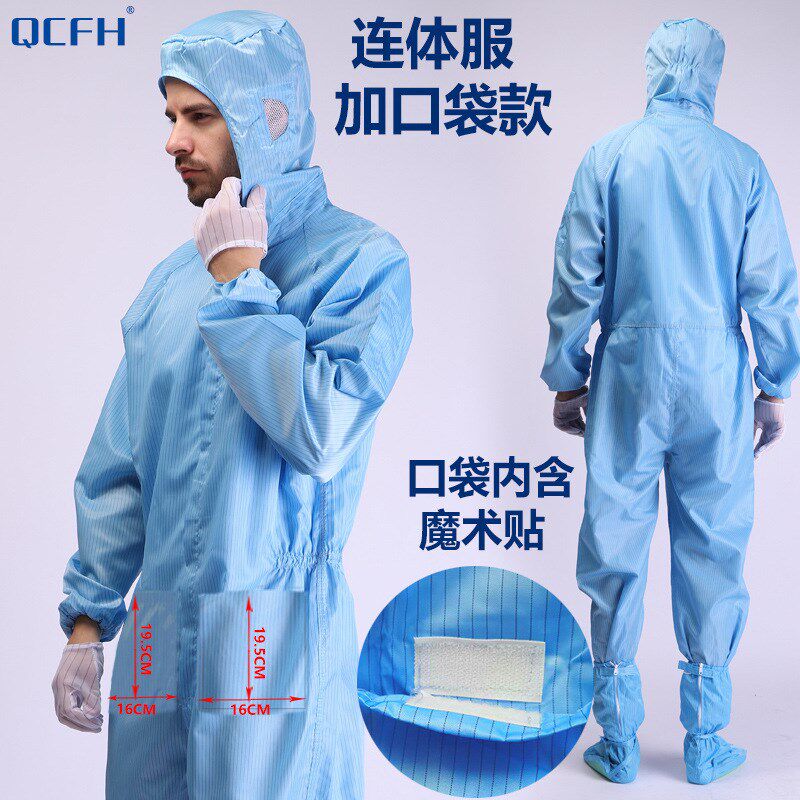 无尘服全身连体加口袋静电衣带帽喷漆服防护隔离防尘工作服男女