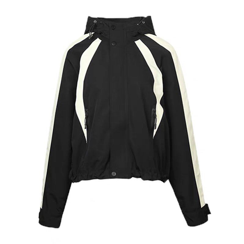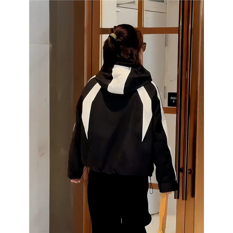 夹克外套时尚撞色拼接短款冲锋衣女款春秋2025新款感夹棉加厚