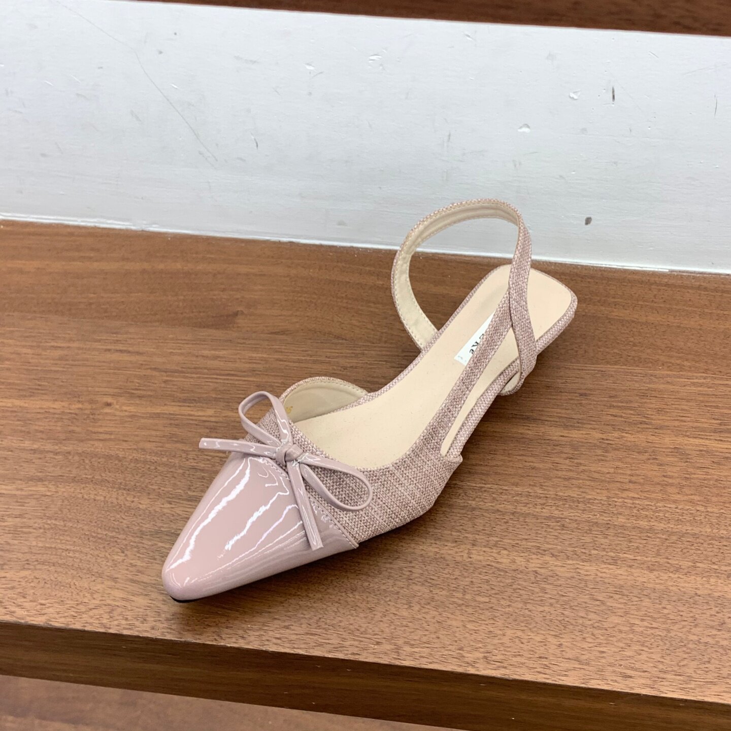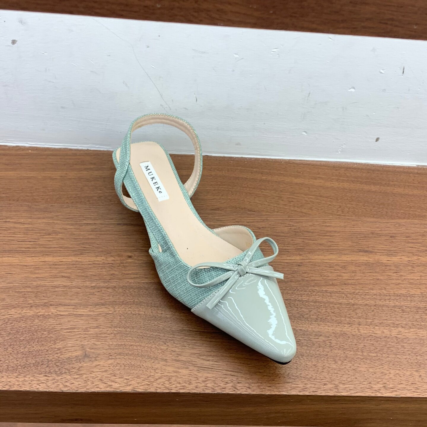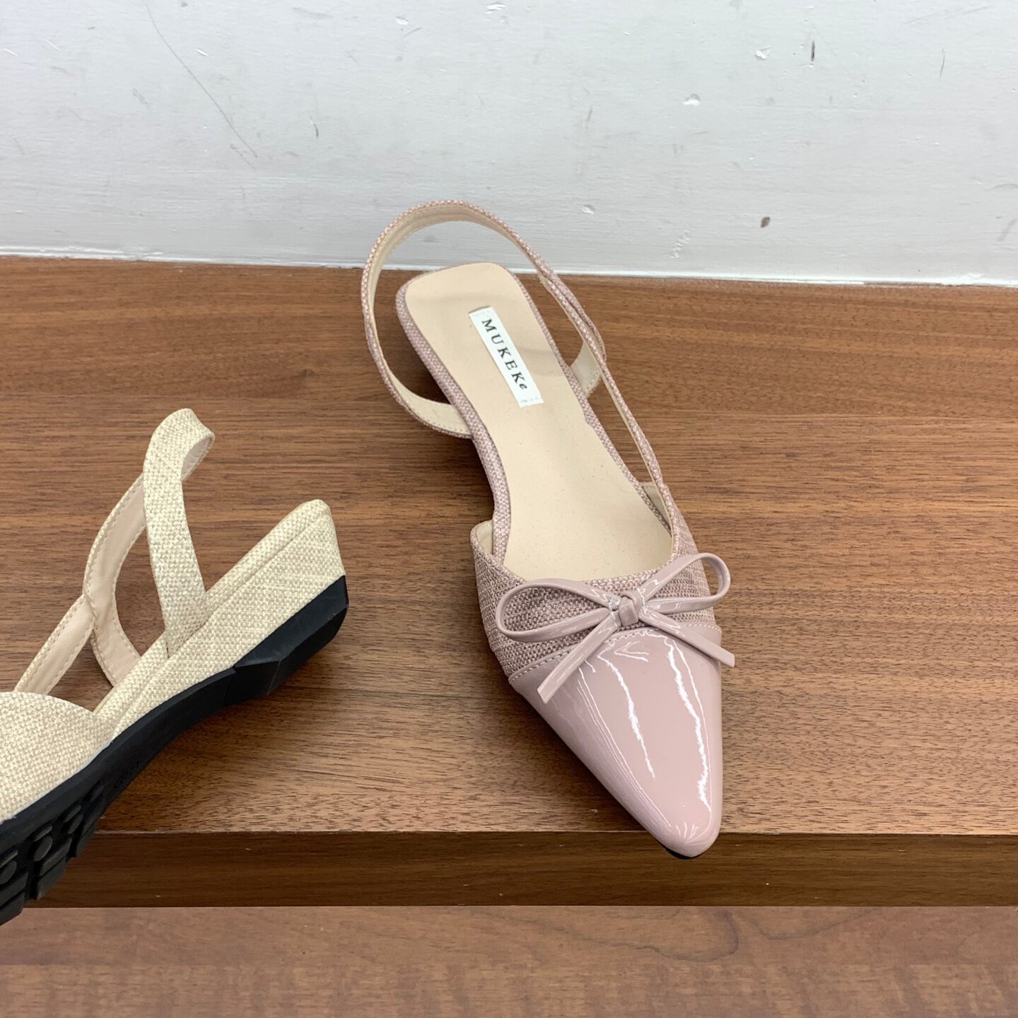 小香风低跟杏色蝴蝶结包头凉鞋女鞋子2026新款春夏配裙子尖头单鞋