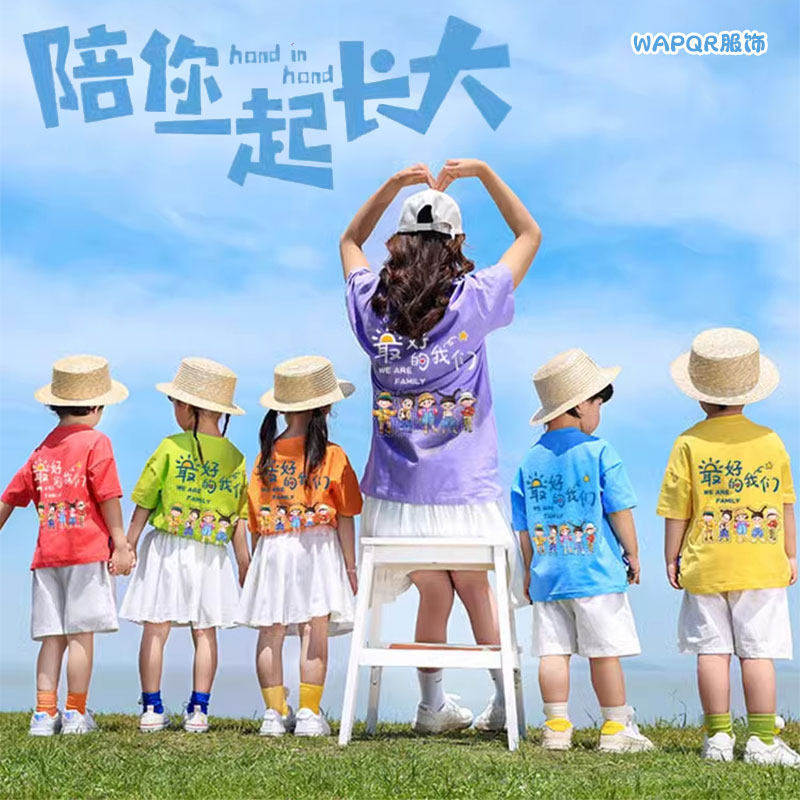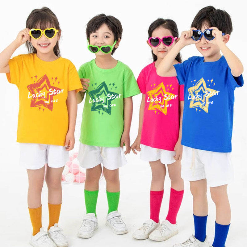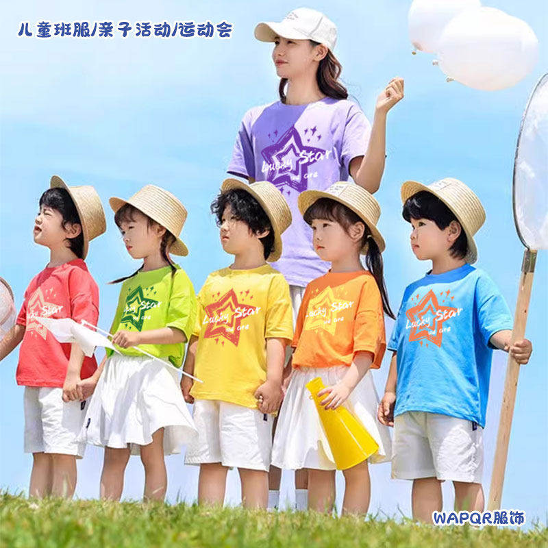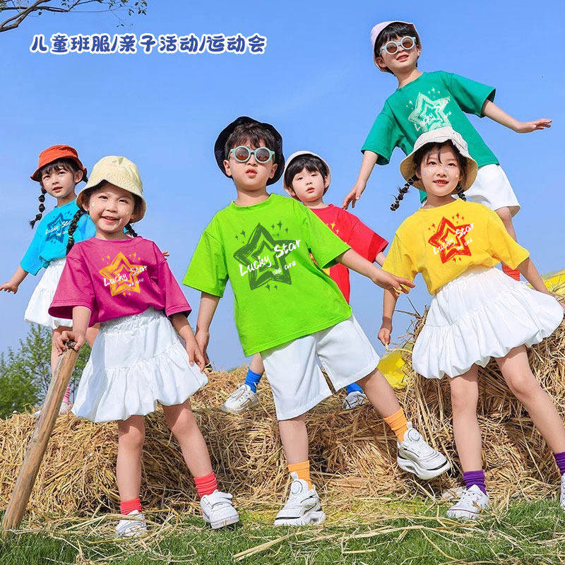 儿童彩色t恤定制多巴胺星星短袖出游穿搭小学生幼儿园运动会班服