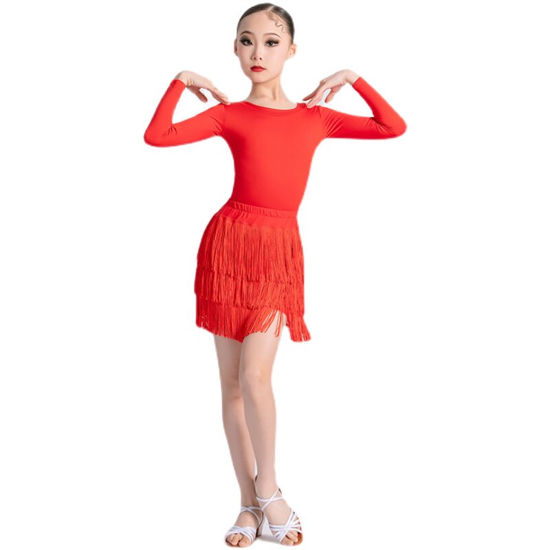 儿童拉丁舞蹈服春秋新款女童考级专业练功比赛演出服流苏拉丁舞裙