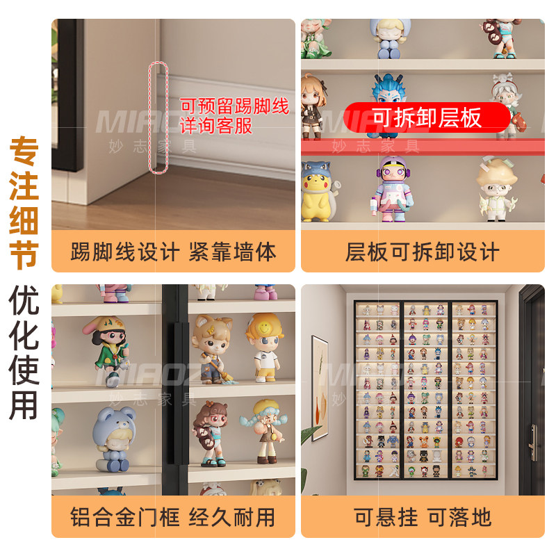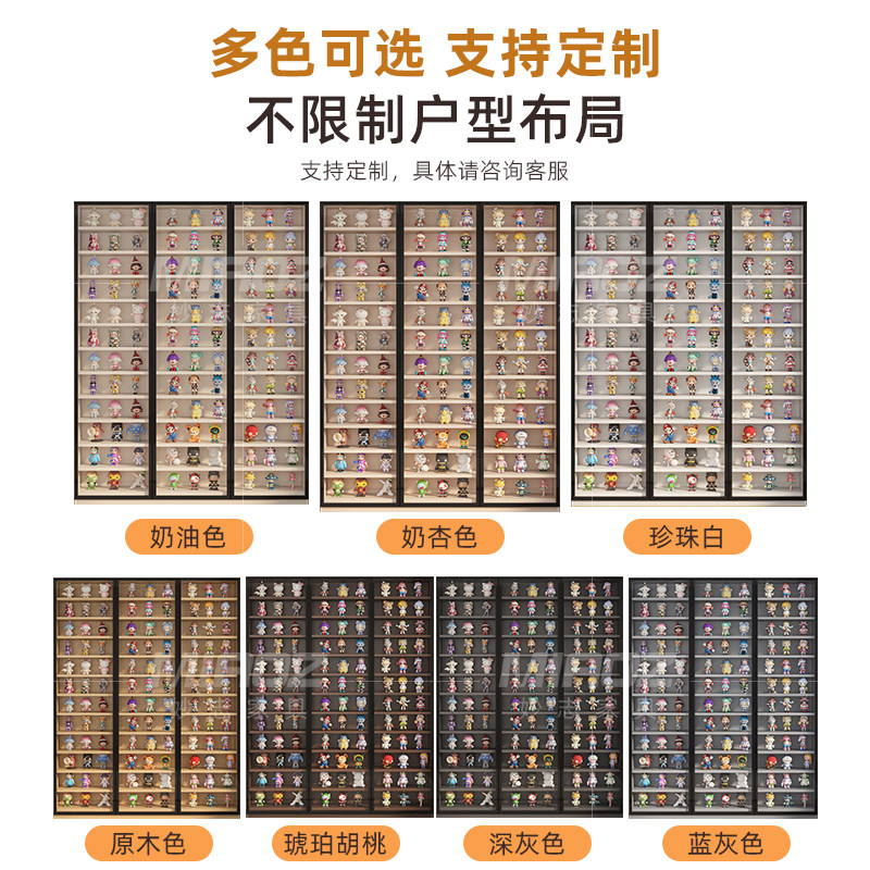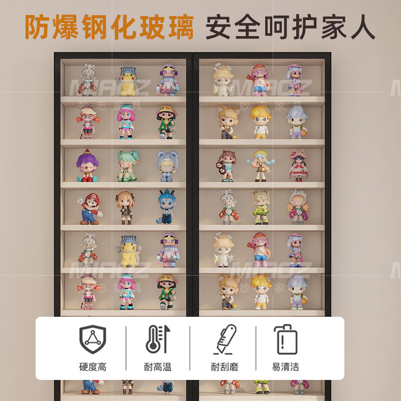 超薄手办柜轻奢盲盒定制柜子泡泡玛特模型收纳柜落地玻璃门展示柜