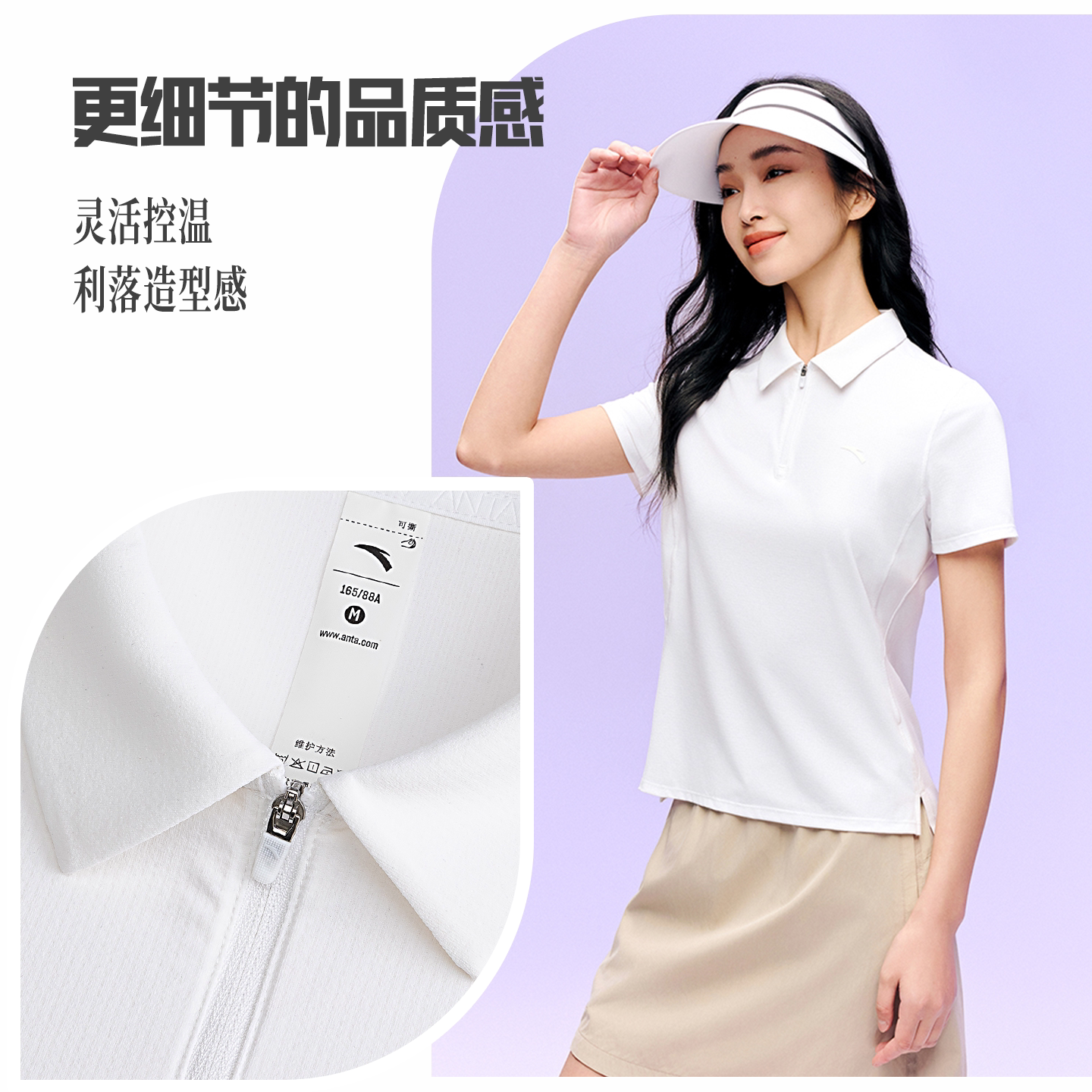 安踏速干polo丨公主线防晒短袖女款夏季翻领透气网球T恤休闲上衣
