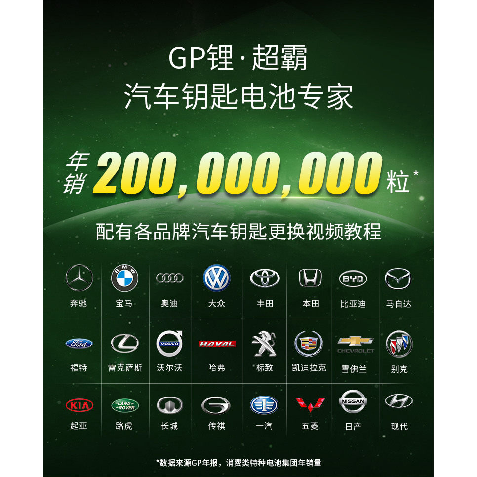 GP超霸CR2032纽扣电池汽车钥匙遥控器纽扣电池适用现代丰田奥迪大众奔驰日产起亚