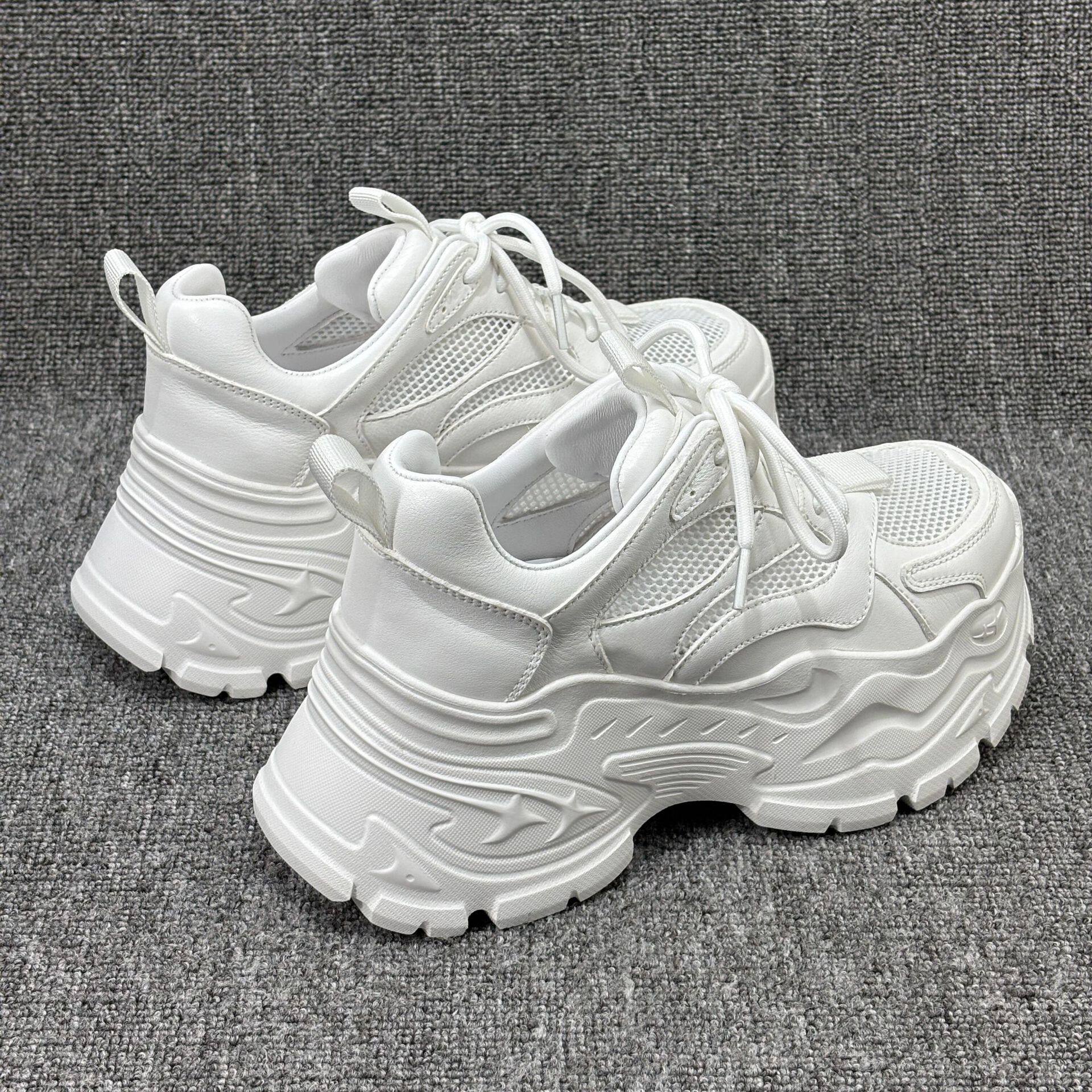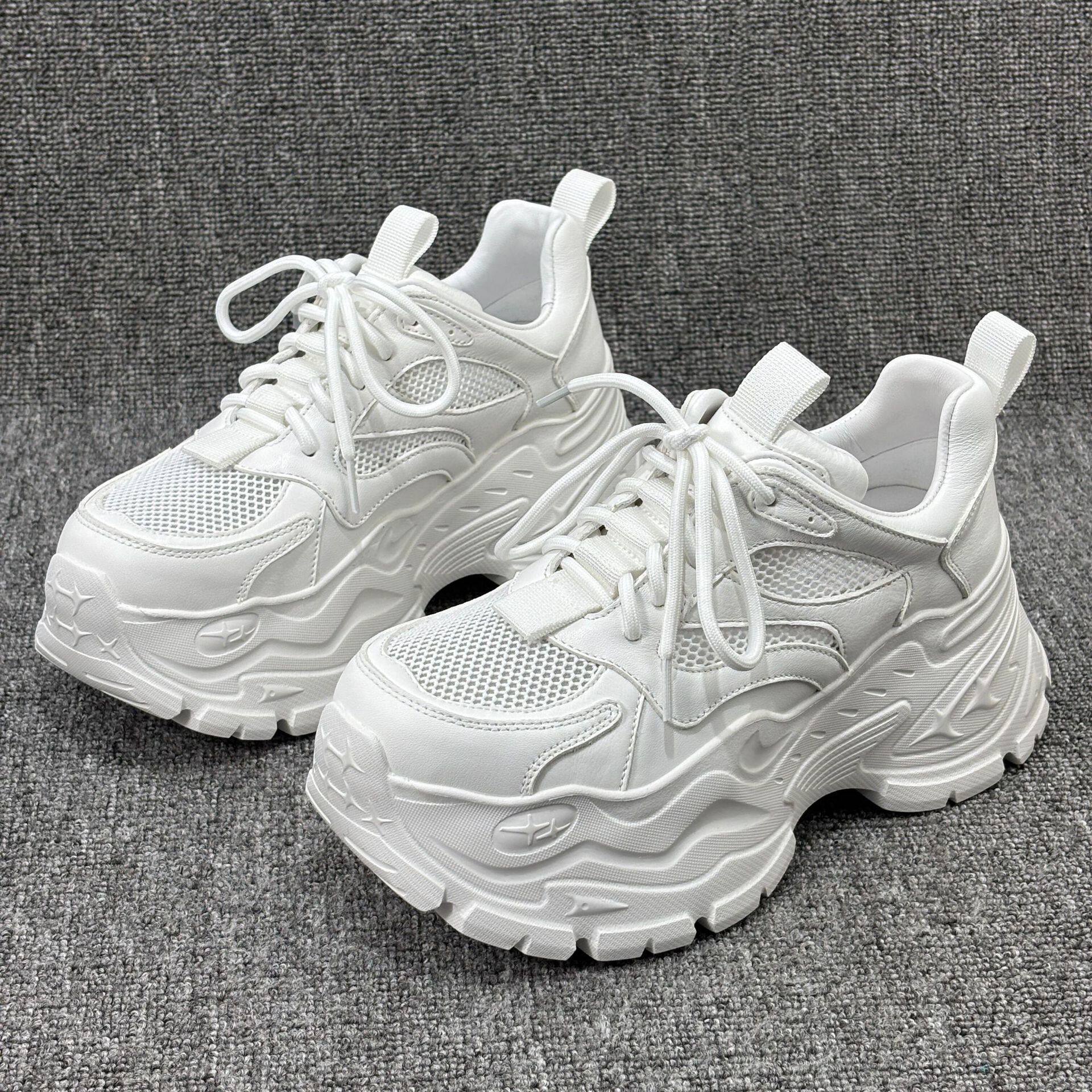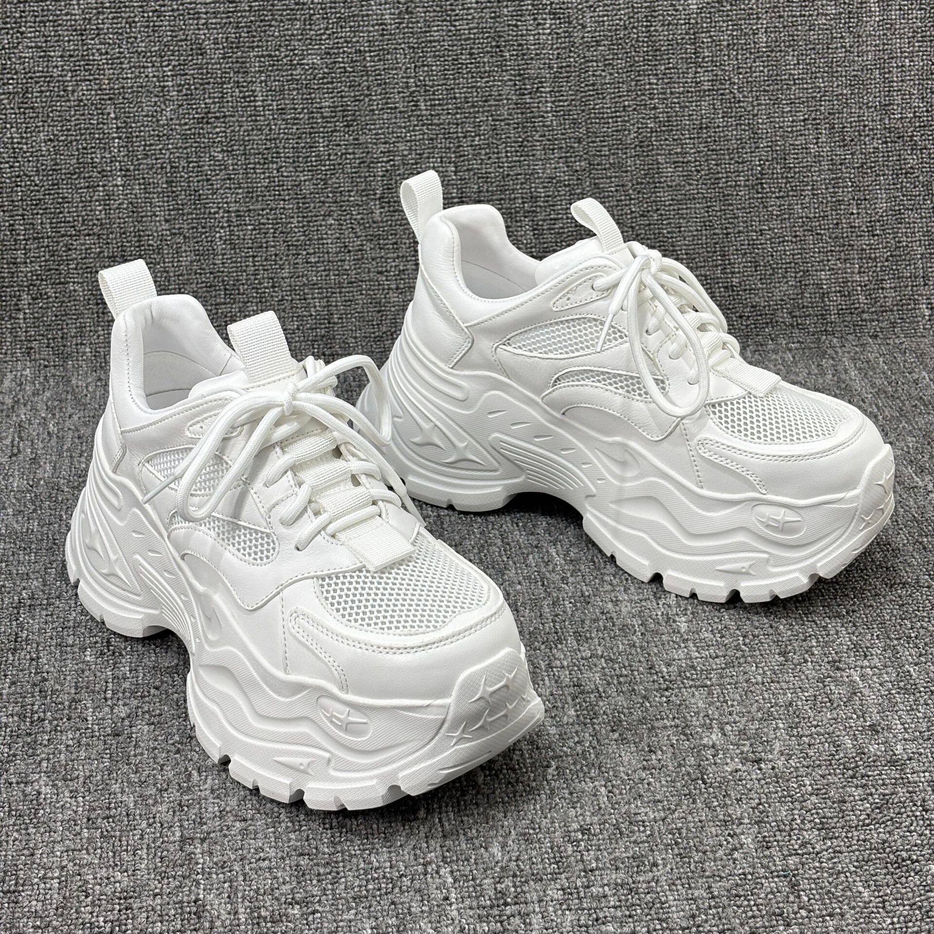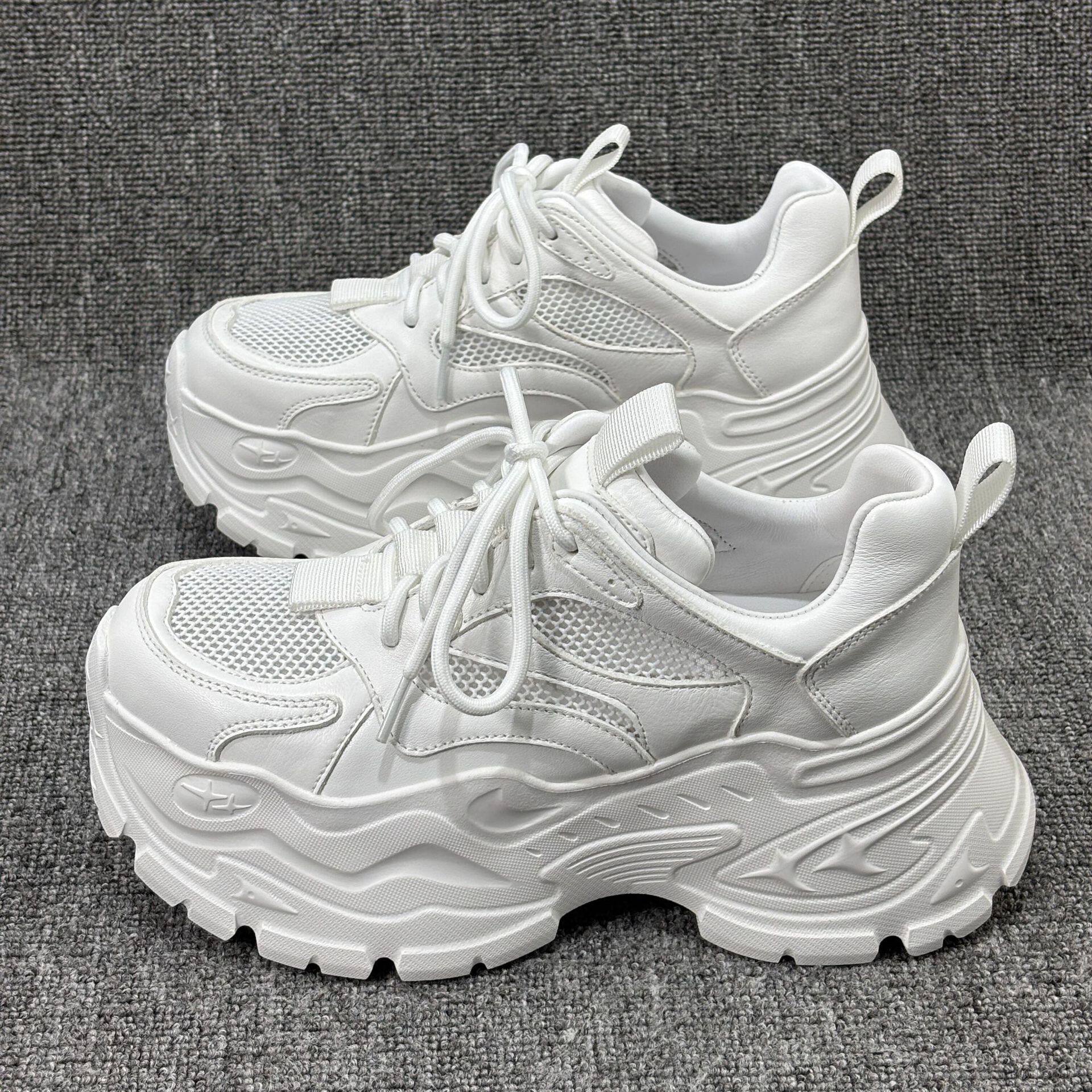 2026春夏新款真皮松糕厚底小白鞋透气网面时尚休闲老爹鞋女潮