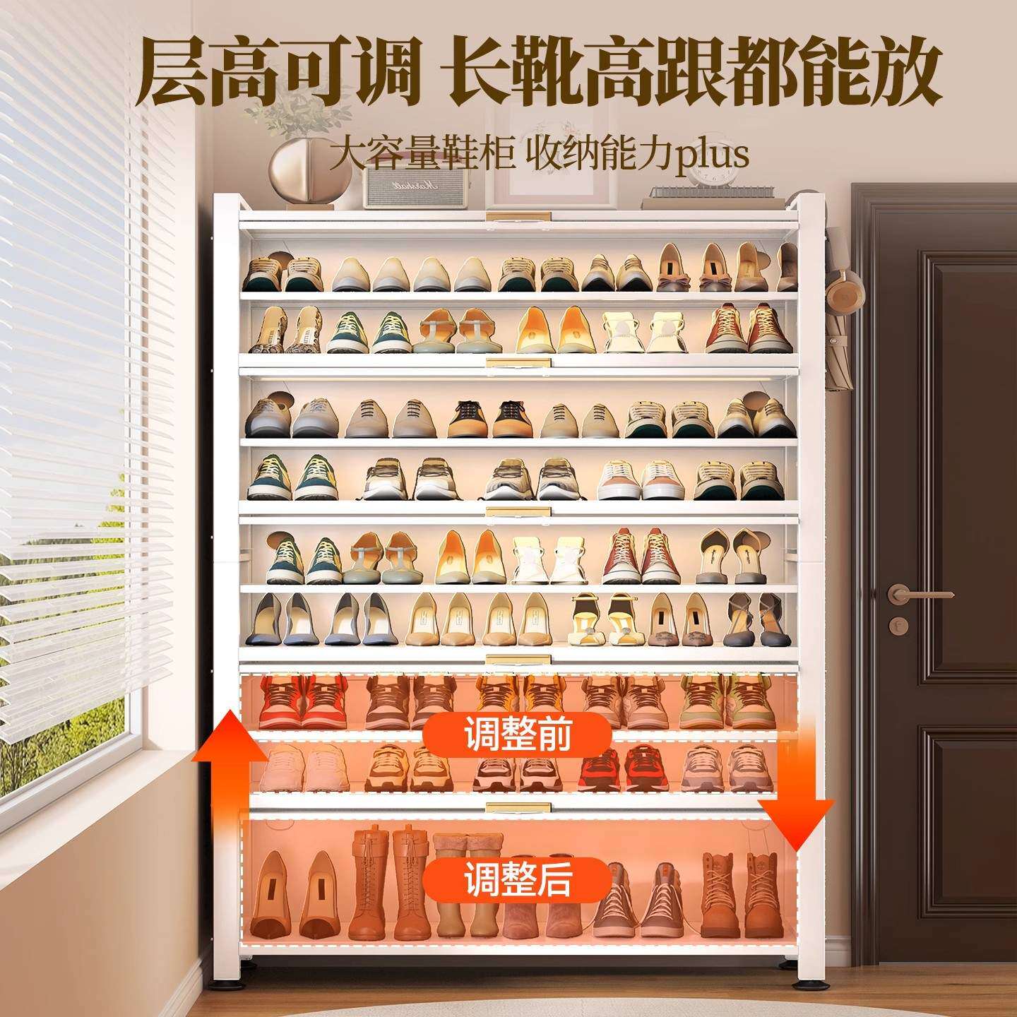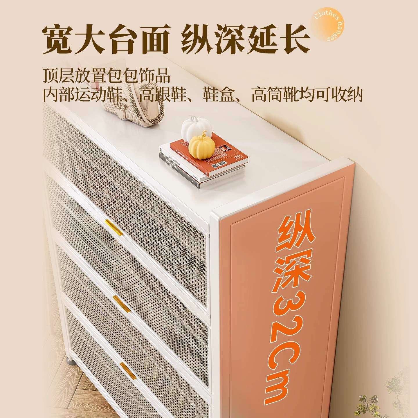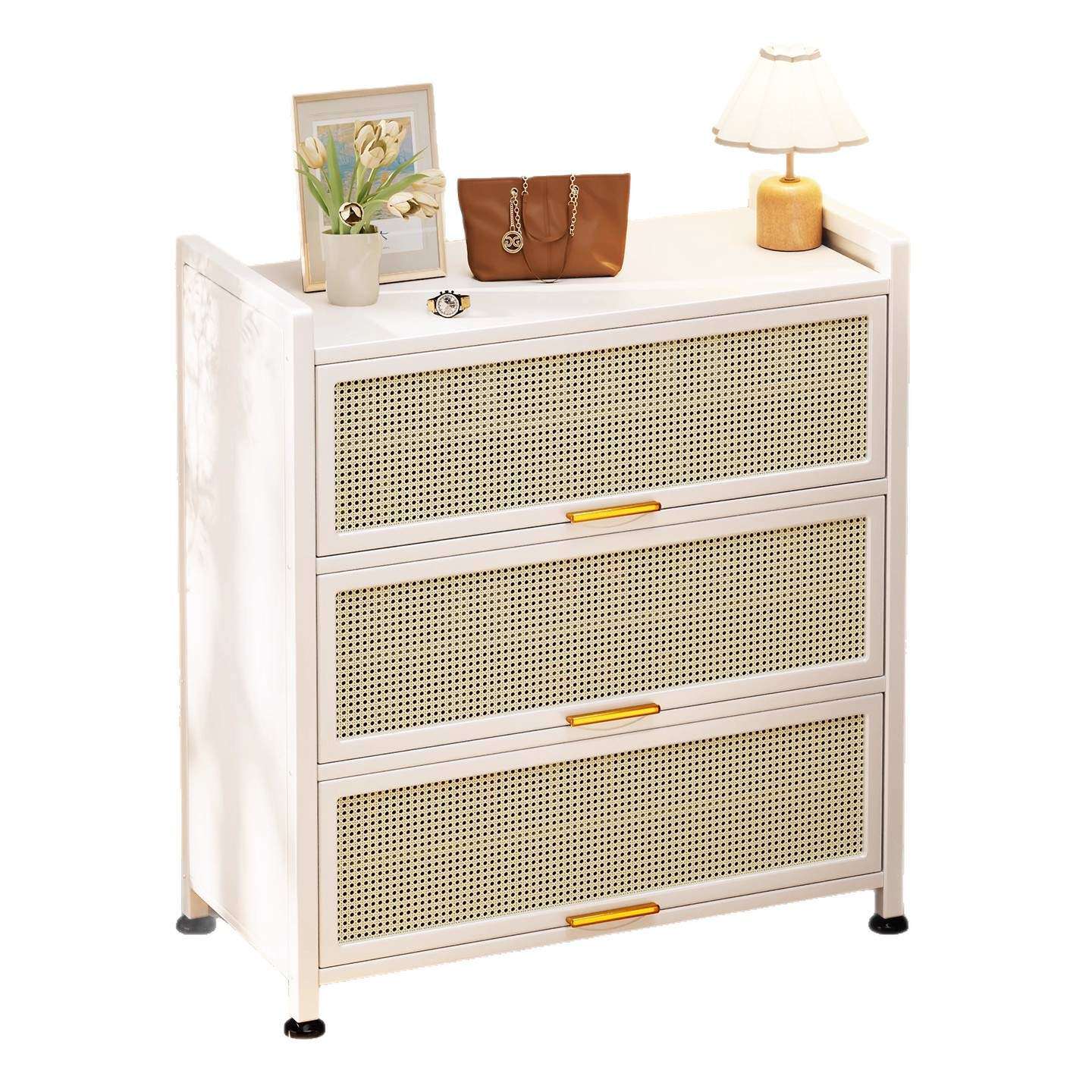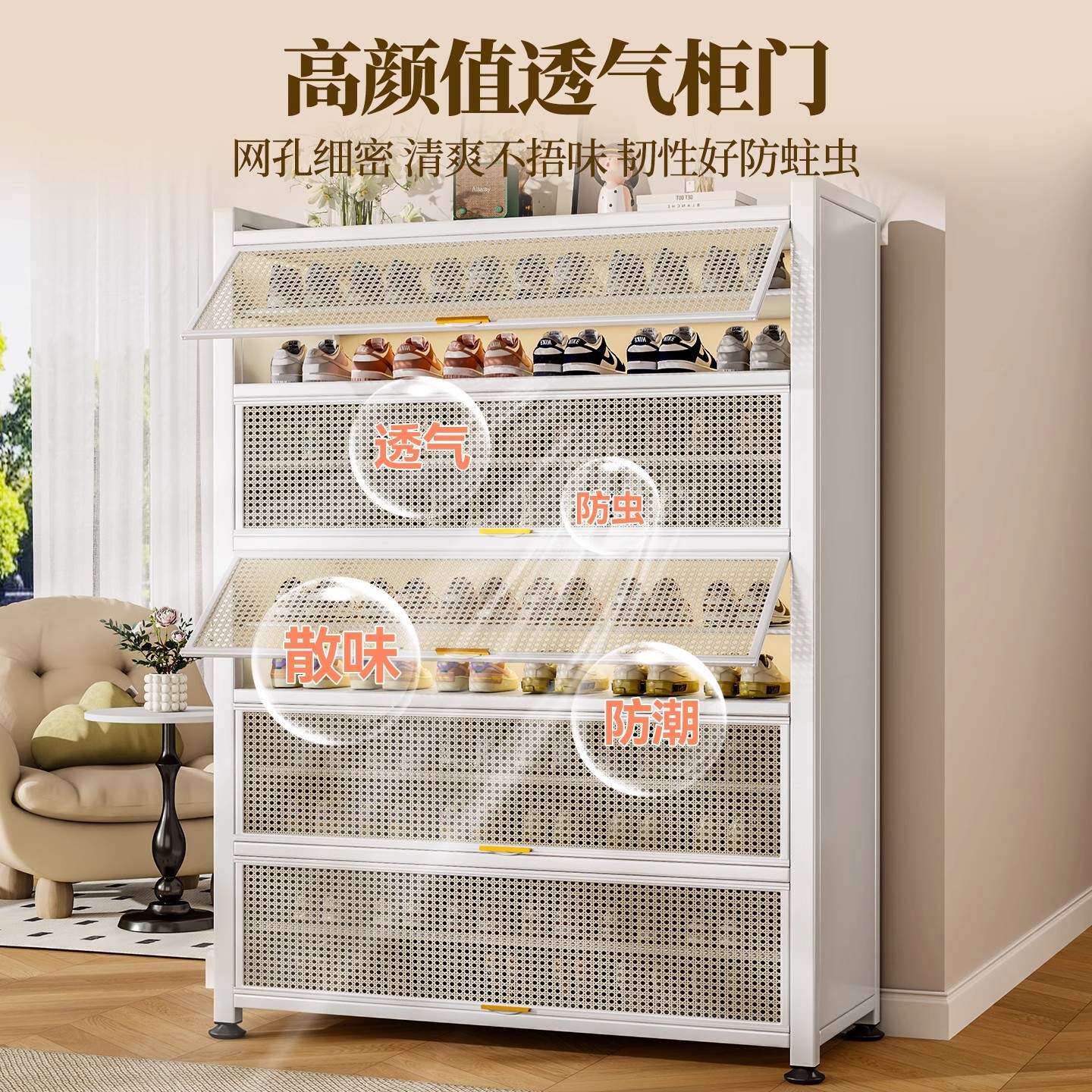 藤编鞋柜家用门口多层透气大容量金属鞋架一体靠墙钢制铁皮收纳柜