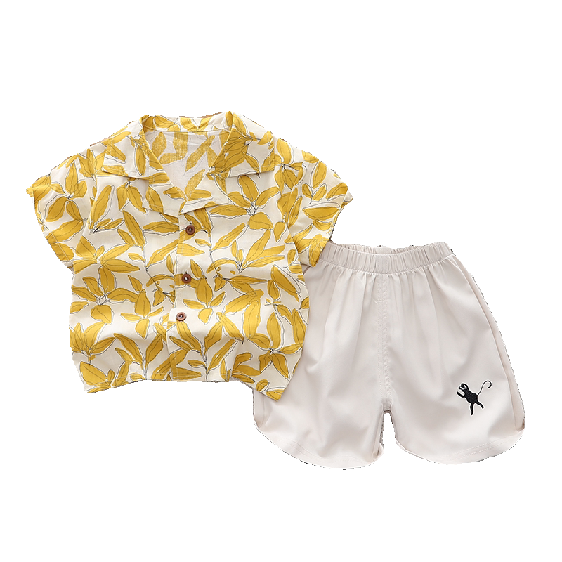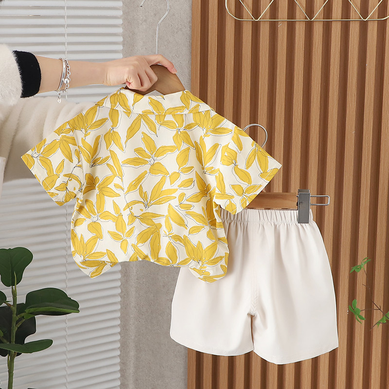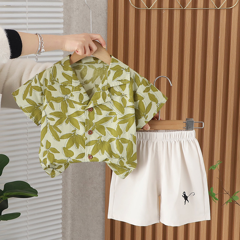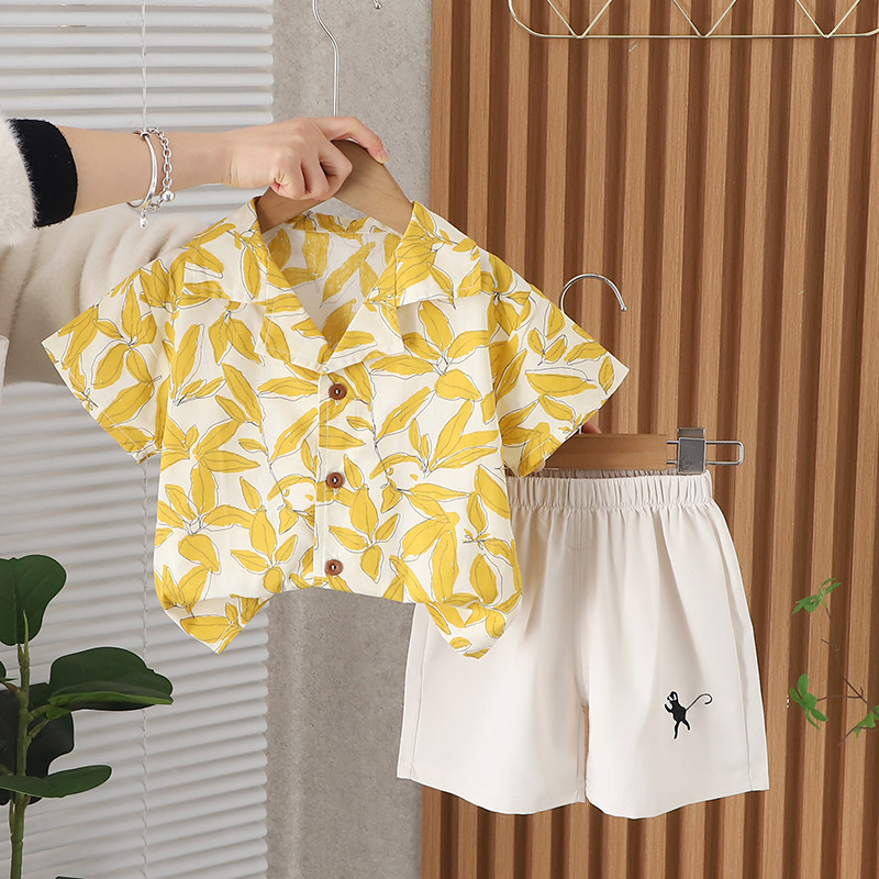 男童沙滩衬衫短袖套装2026新款儿童休闲韩版翻领夏装两件套宝宝酷