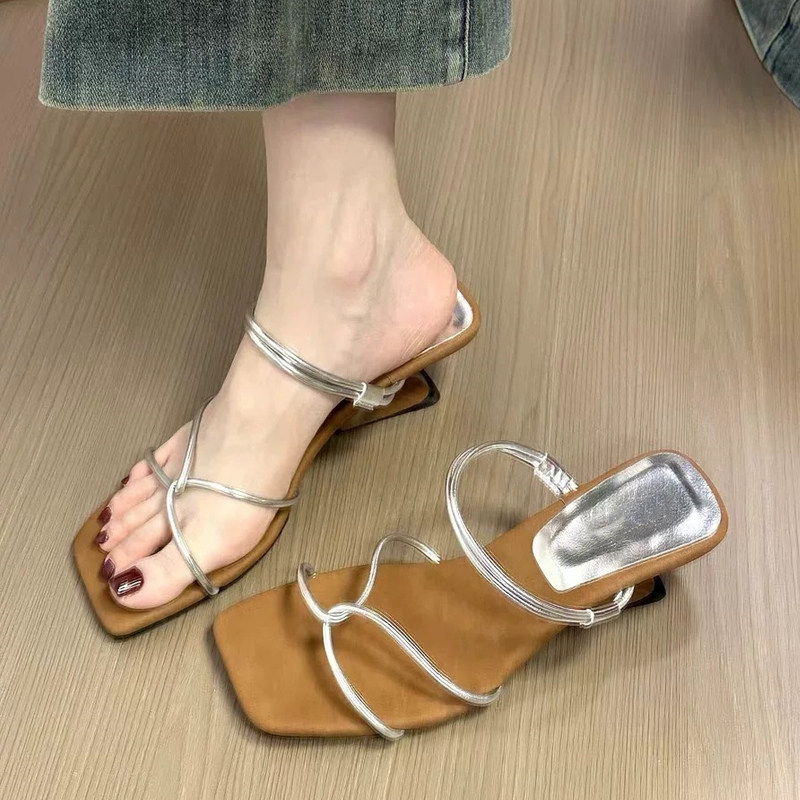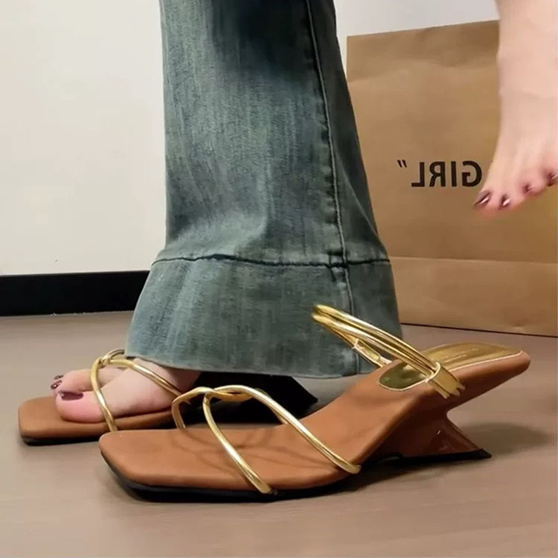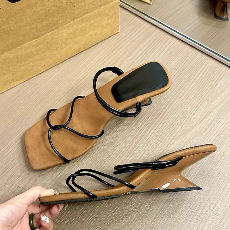 升级版法式棕色露趾两穿凉鞋女夏季新款气质时尚坡跟配裙子高跟拖