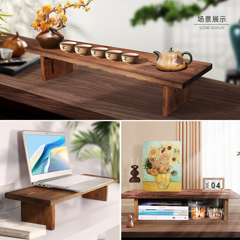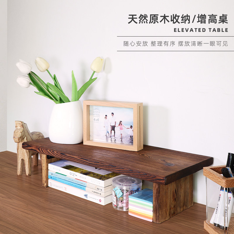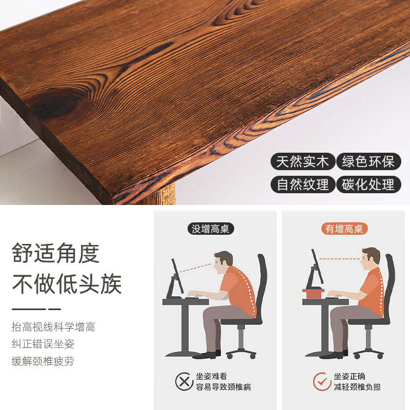 复古实木台式电脑增高架子办公桌显示器增高托架笔记本悬空置物架