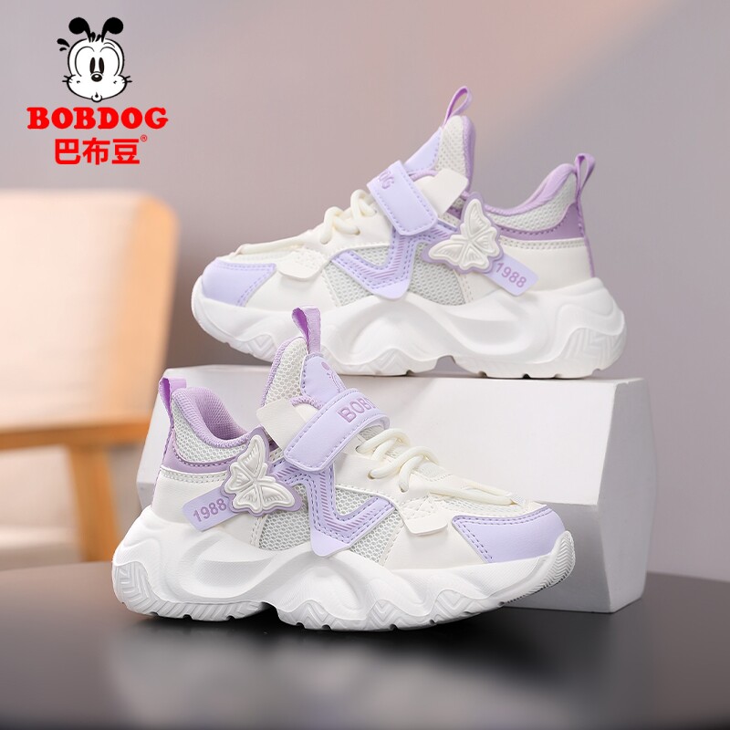 巴布豆女童鞋2026春秋新款透气双网运动鞋子女孩儿童轻便百搭皮面