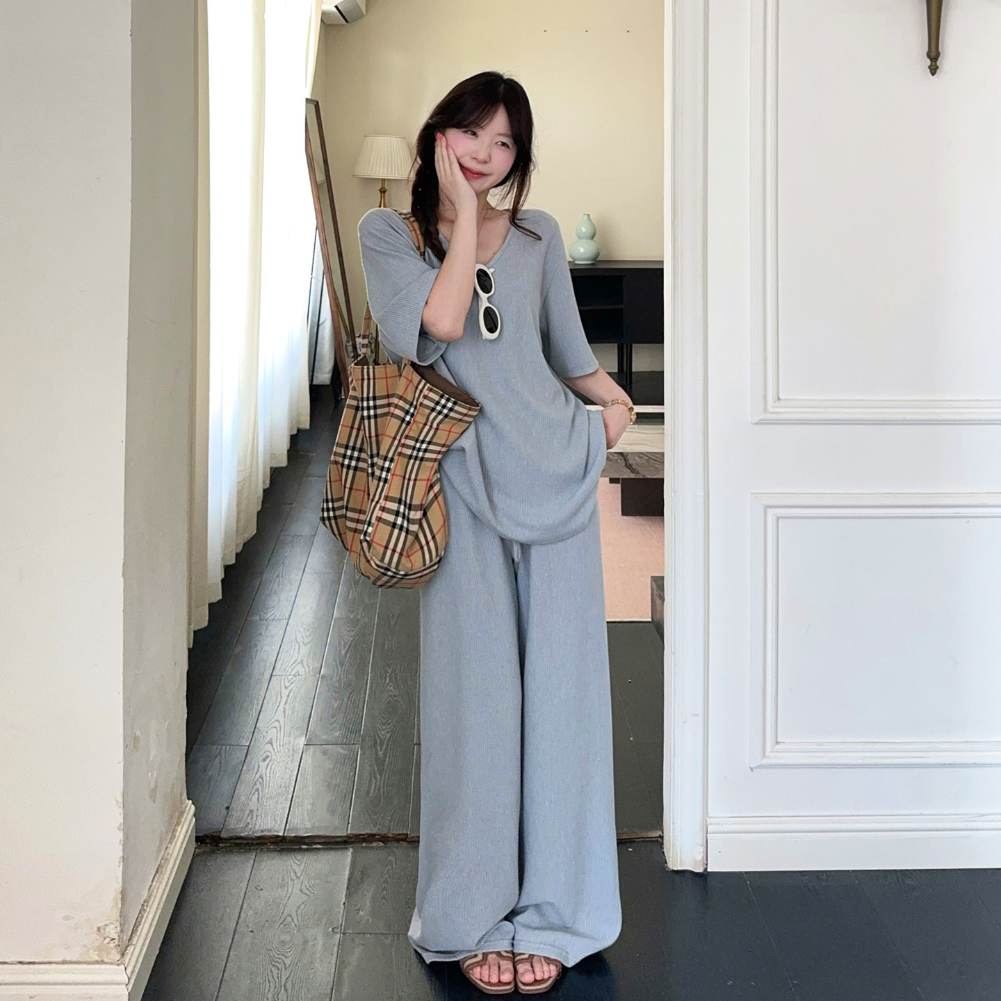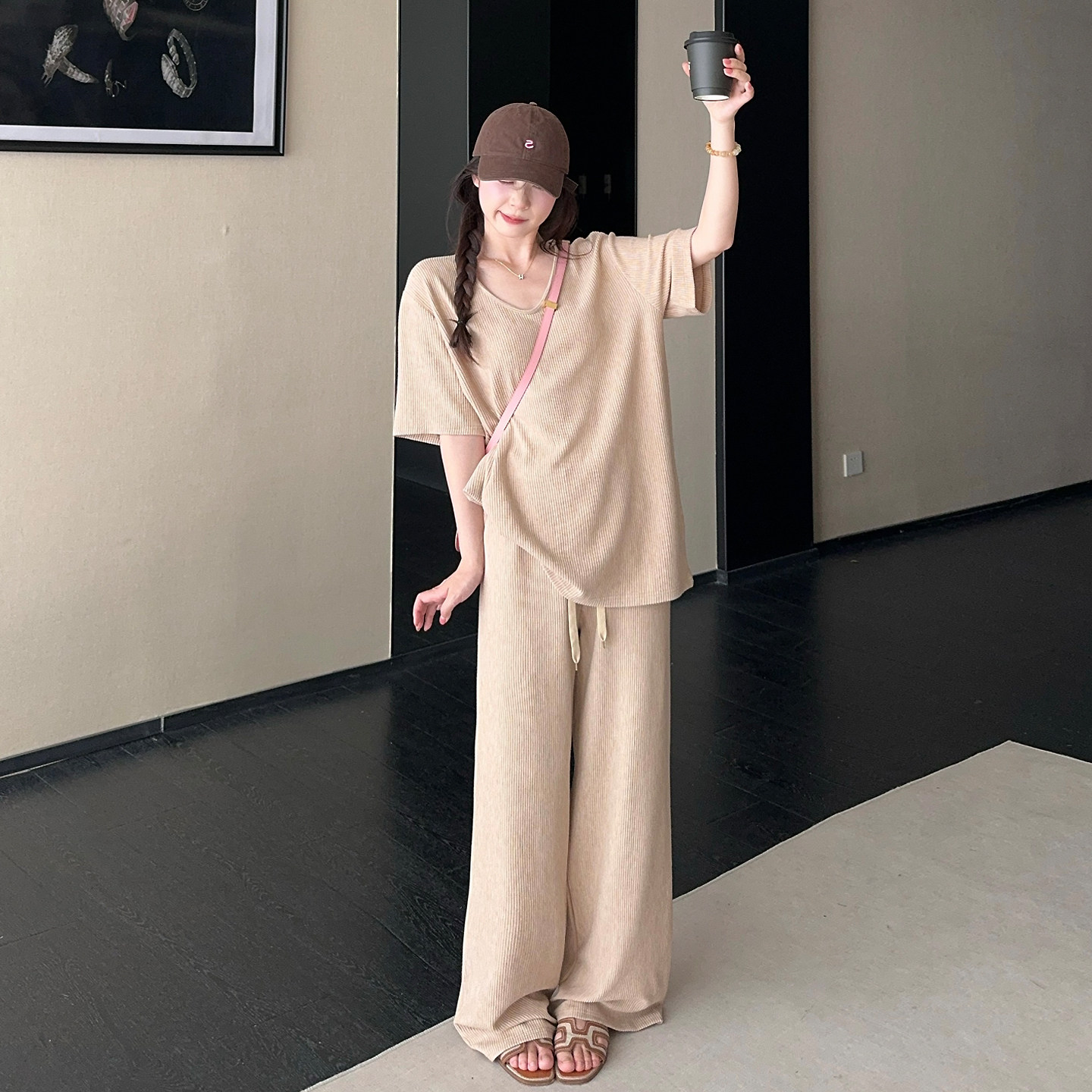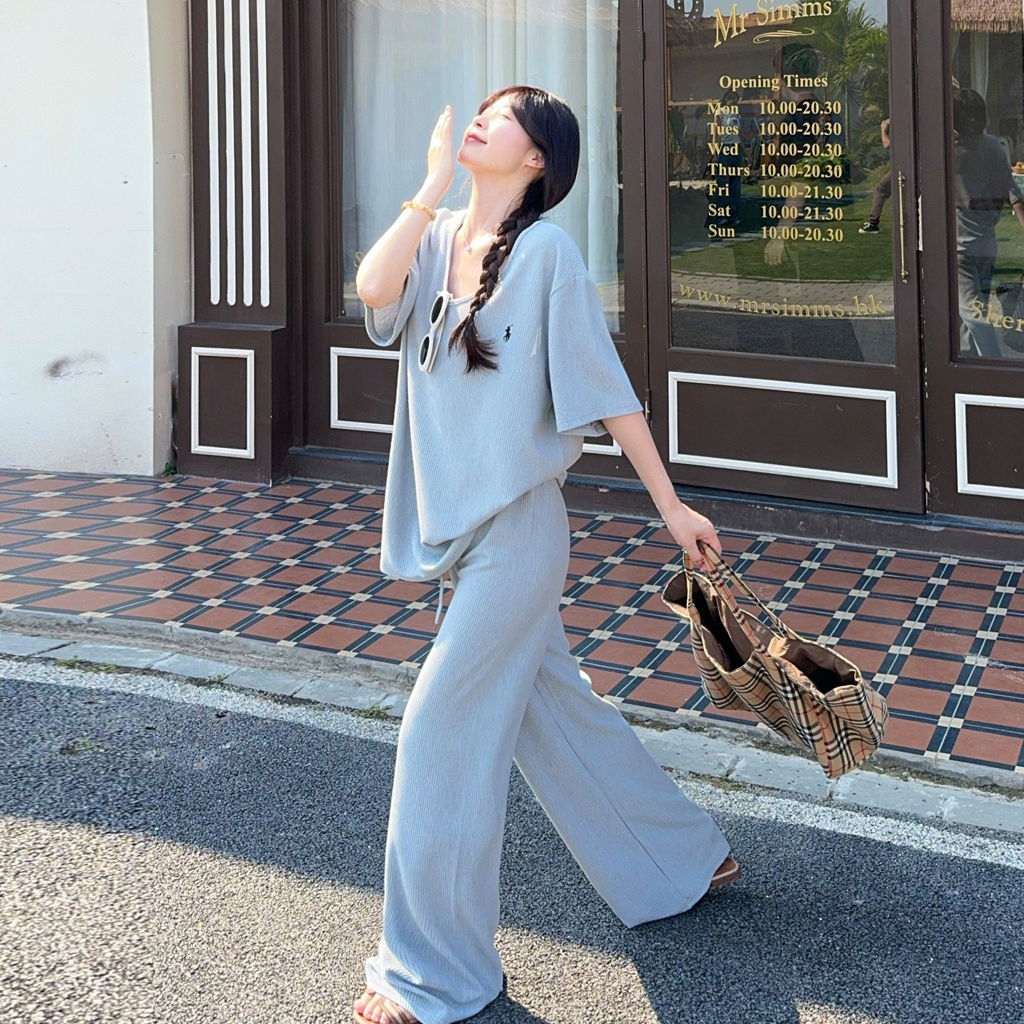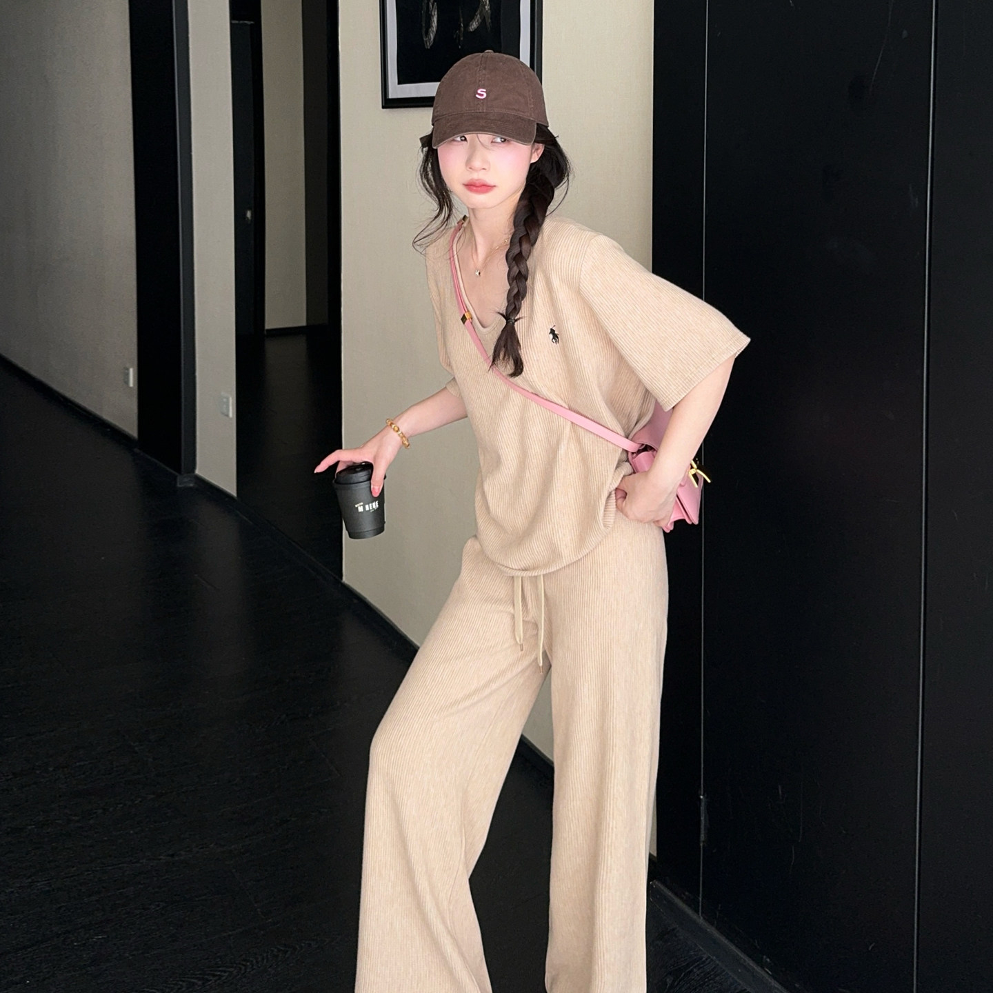 慵懒风休闲穿搭套装女2026春夏新款宽松显瘦上衣阔腿裤子两件套装