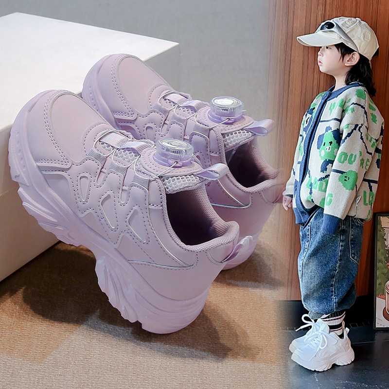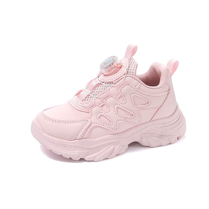 女童老爹鞋旋转纽扣春秋新款学生软底皮面防水小白鞋儿童运动鞋潮