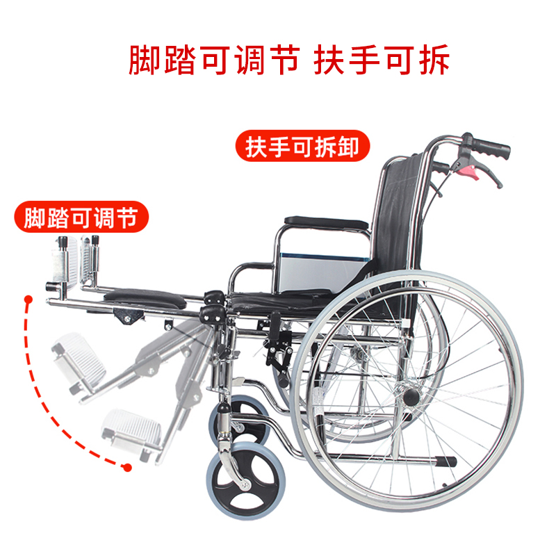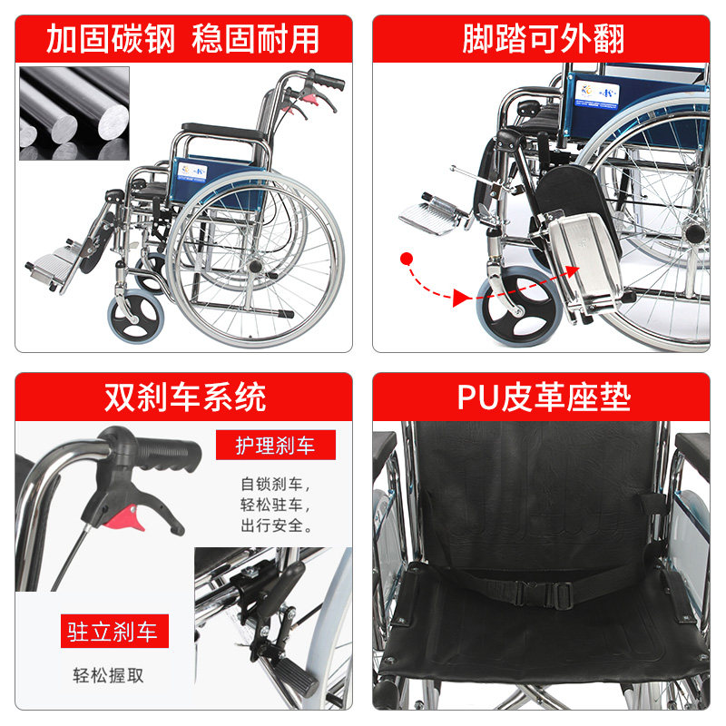 凯洋轮椅轻便折叠PU坐垫扶手可掀可抬腿医院骨科专用手推车代步车