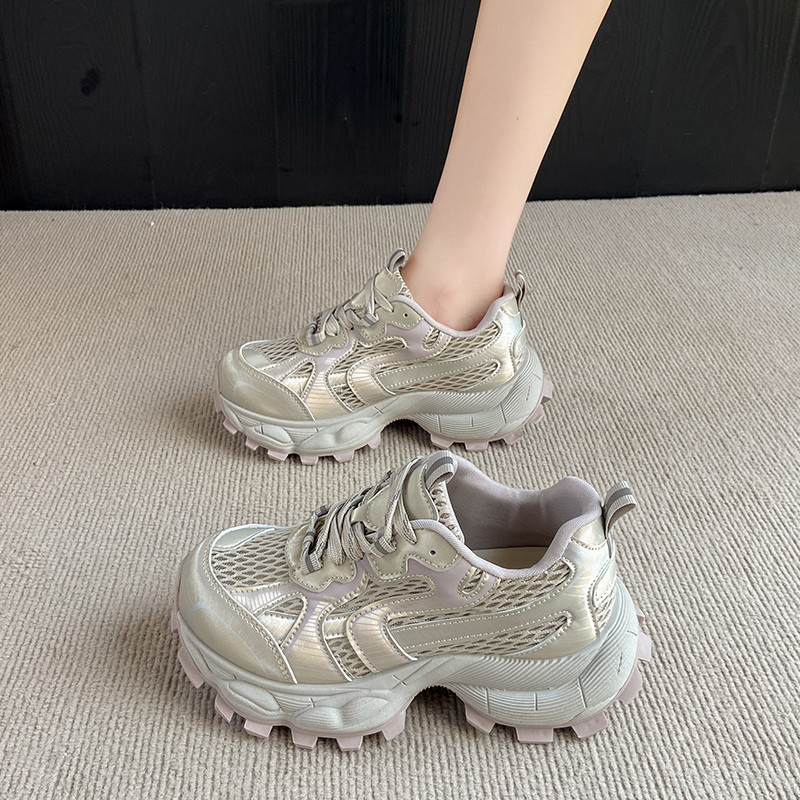 夏季女鞋老爹鞋女透气网面网鞋配阔腿裤的鞋子厚底小白鞋运动鞋潮