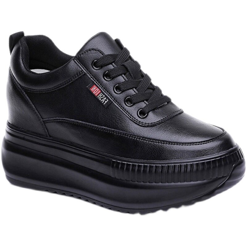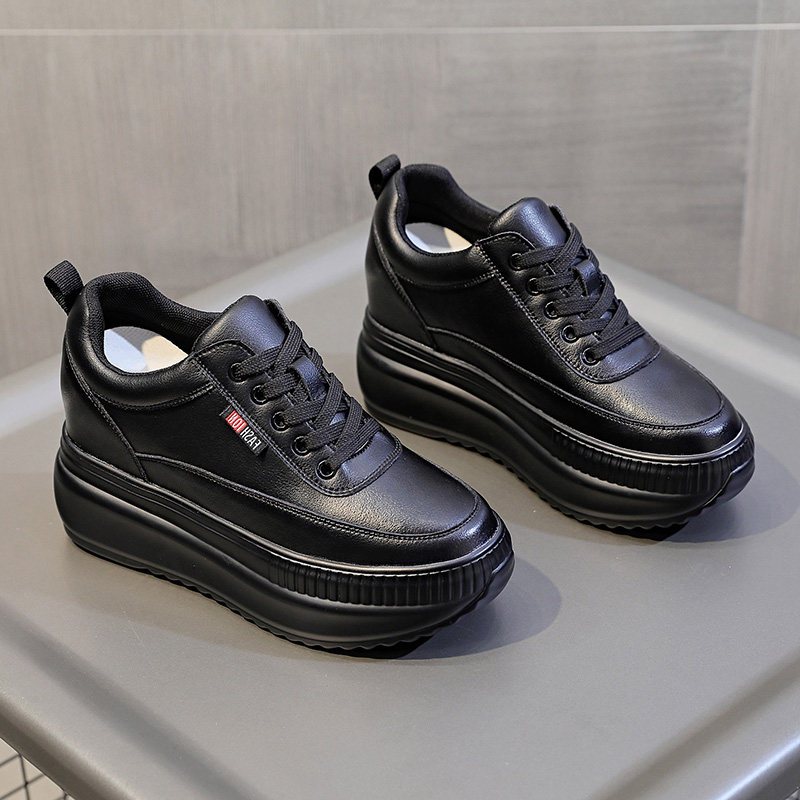 正品潮牌官方黑色内增高8cm女鞋子厚底小个子新款春秋真皮松糕休
