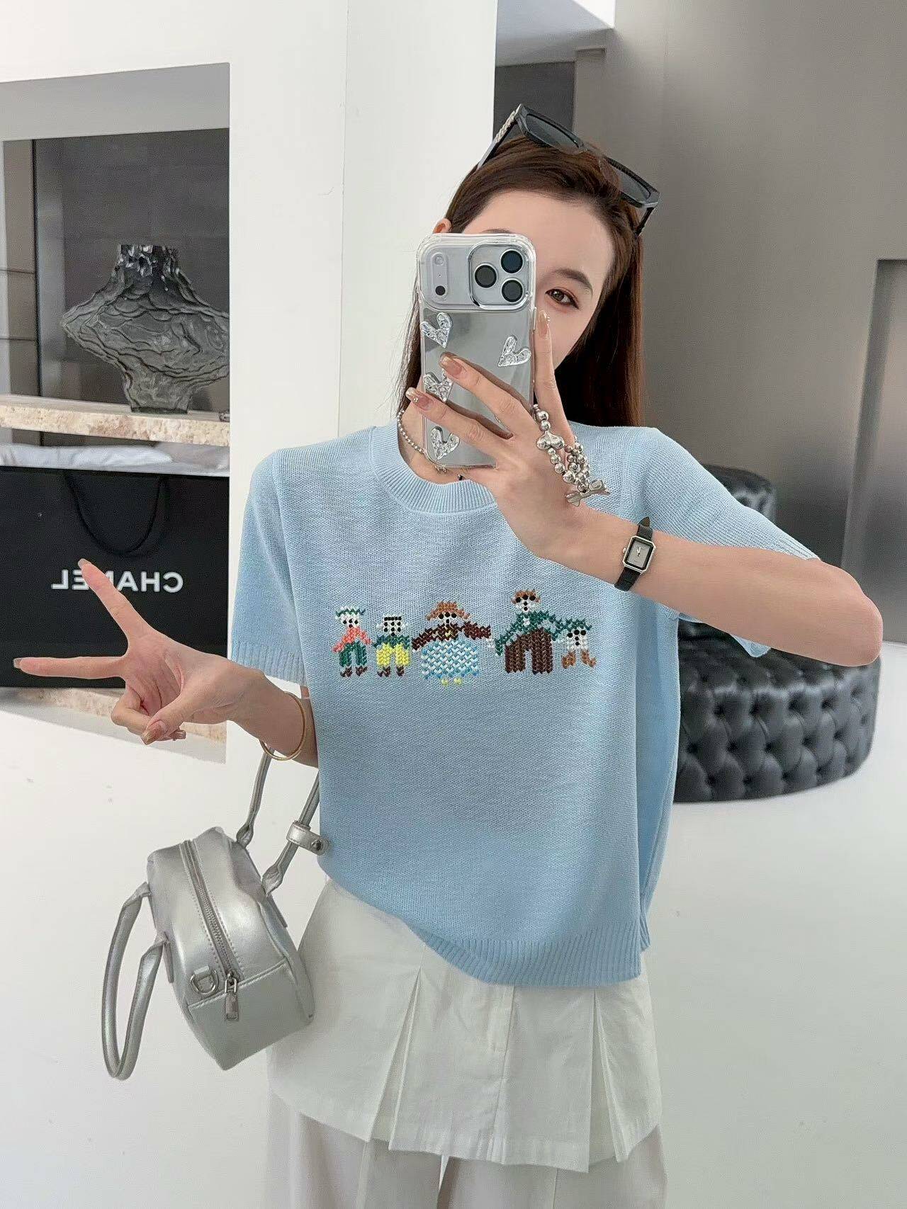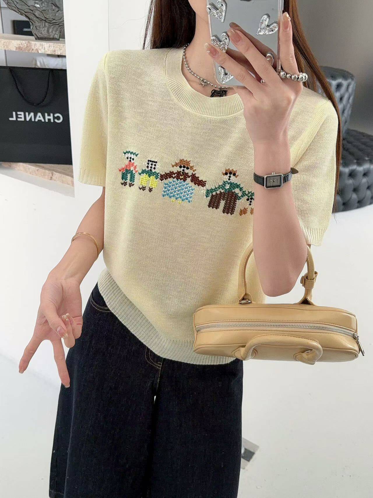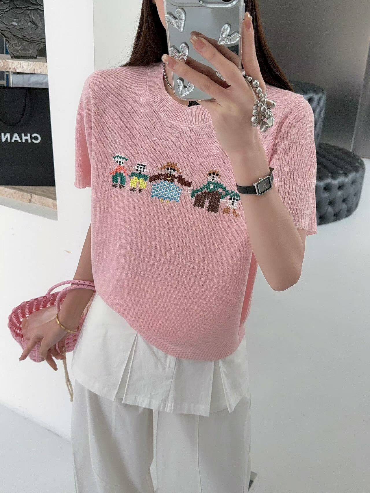 2026年春款新款短袖正肩微透超薄款休闲舒适针织上衣T恤女