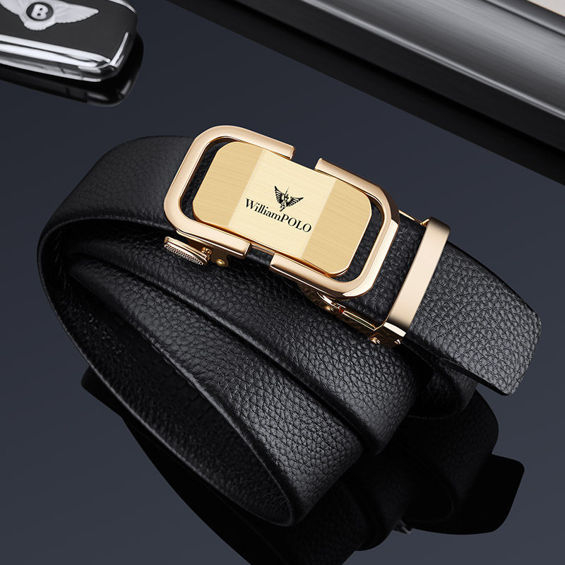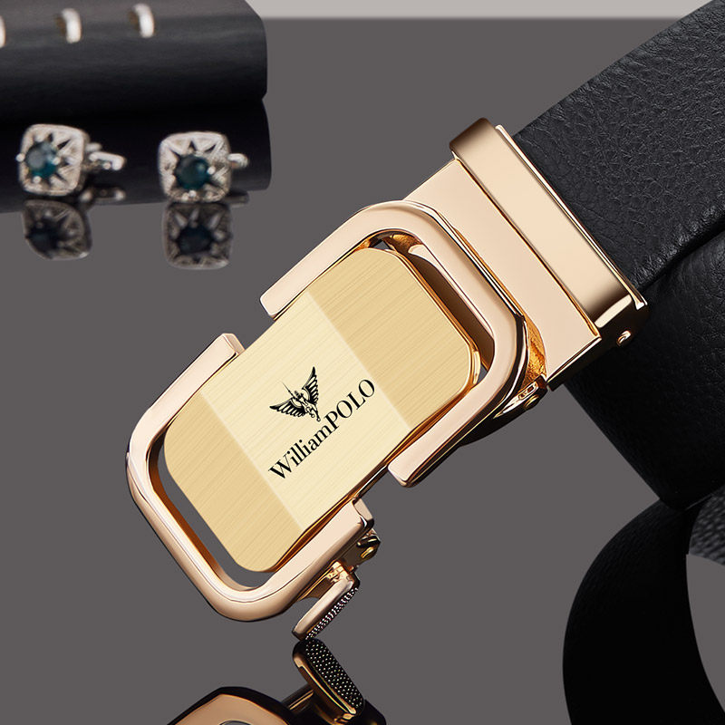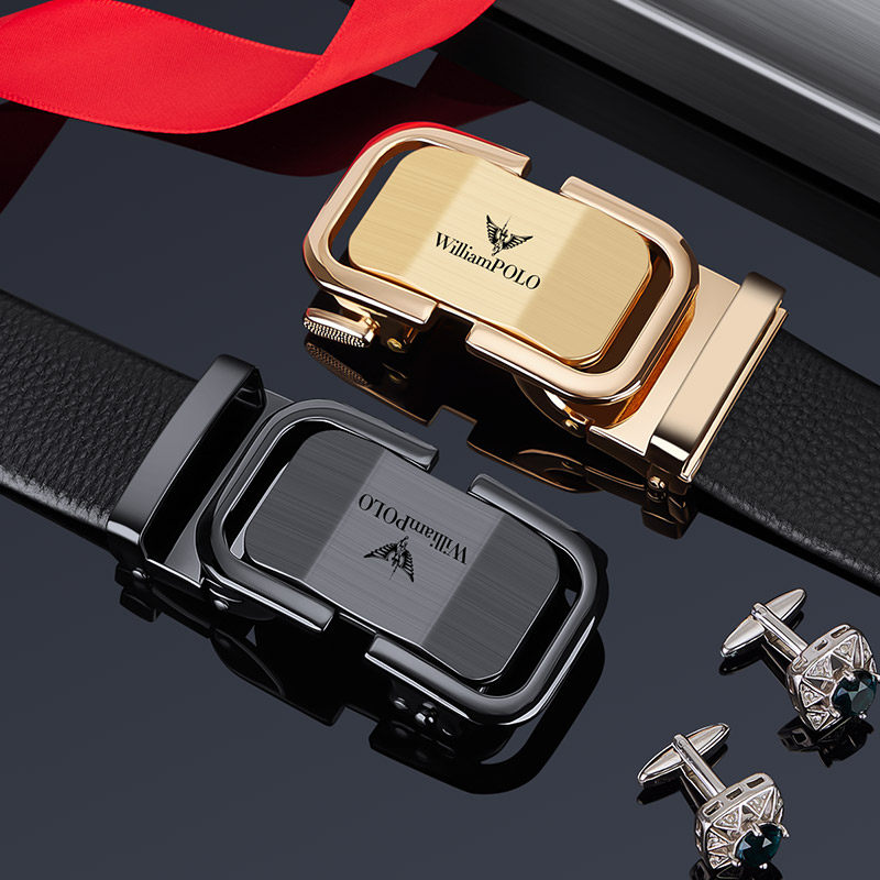 保罗皮带男士真皮头层牛皮自动扣腰带正品新款高档年轻人商务裤带