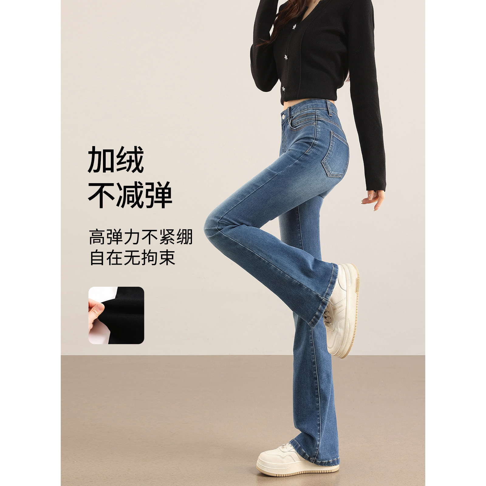 加绒微喇牛仔裤女2026新款冬季加厚高腰显瘦修身复古小个子喇叭裤