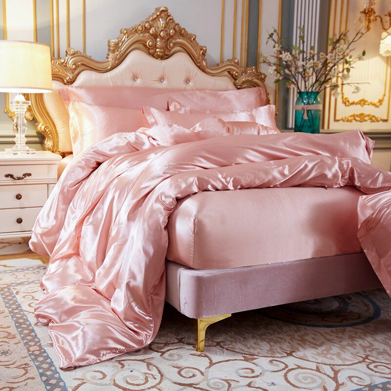 水洗冰丝四件套夏天欧q式真丝滑裸睡紫色床单床笠床上用品丝绸被