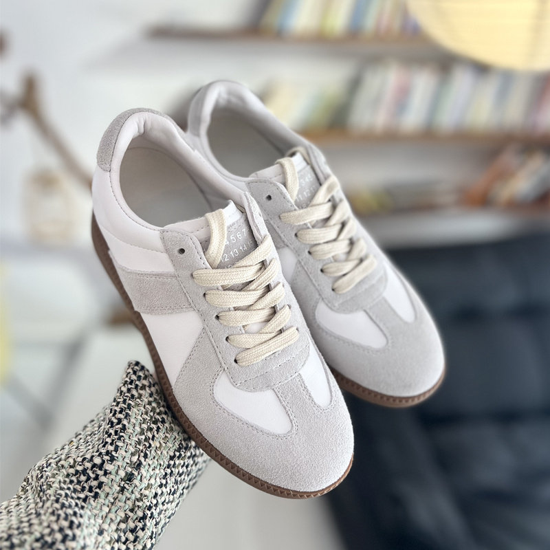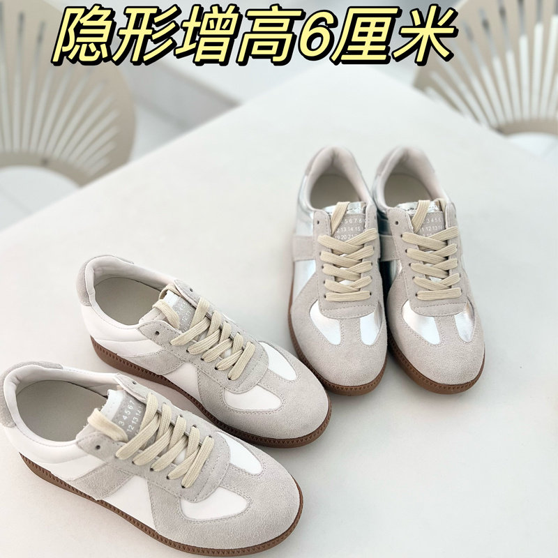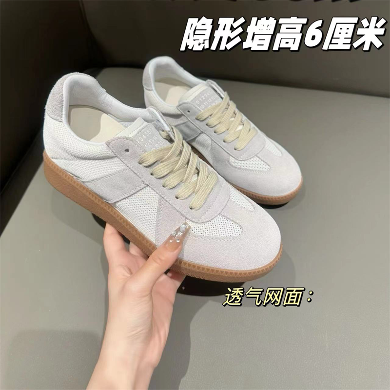 6cm~内增高透气网真皮德训鞋女2024夏天穿搭运动休闲数字小白鞋潮