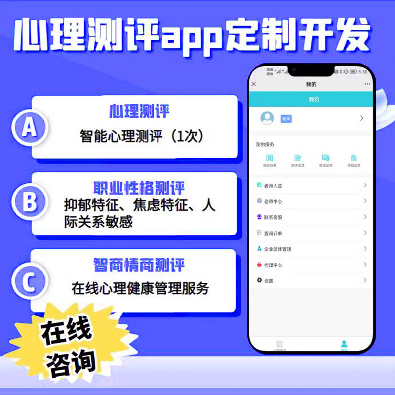 线上心理咨询小程序预约系统健康测评估付费问答职业情感性格开发