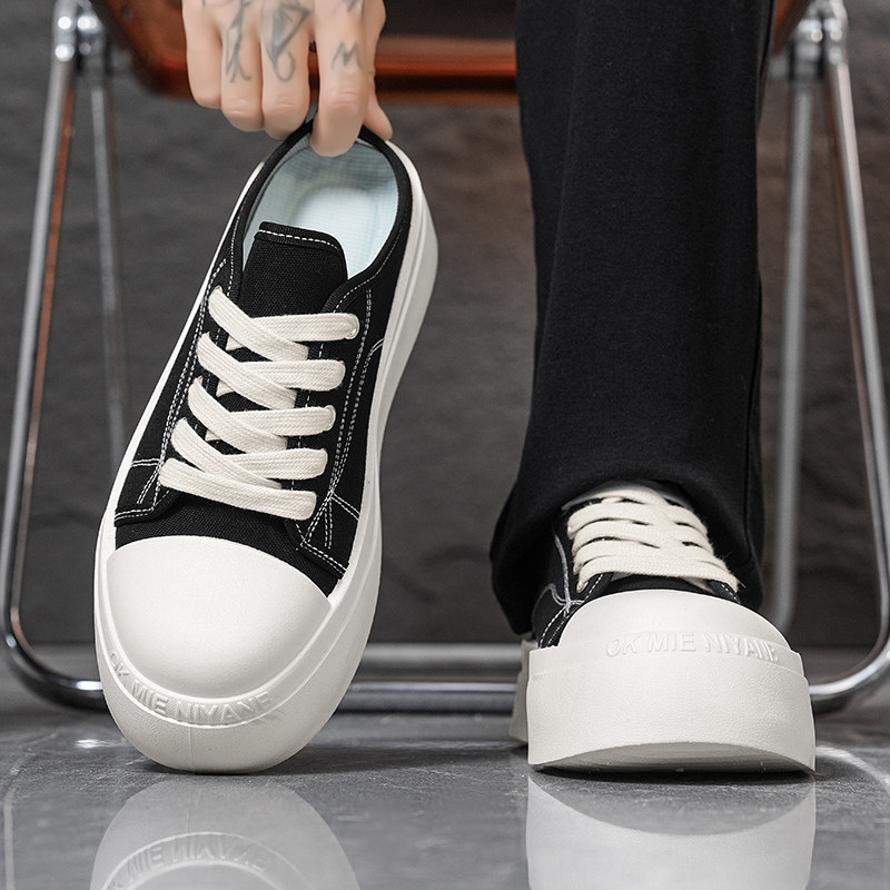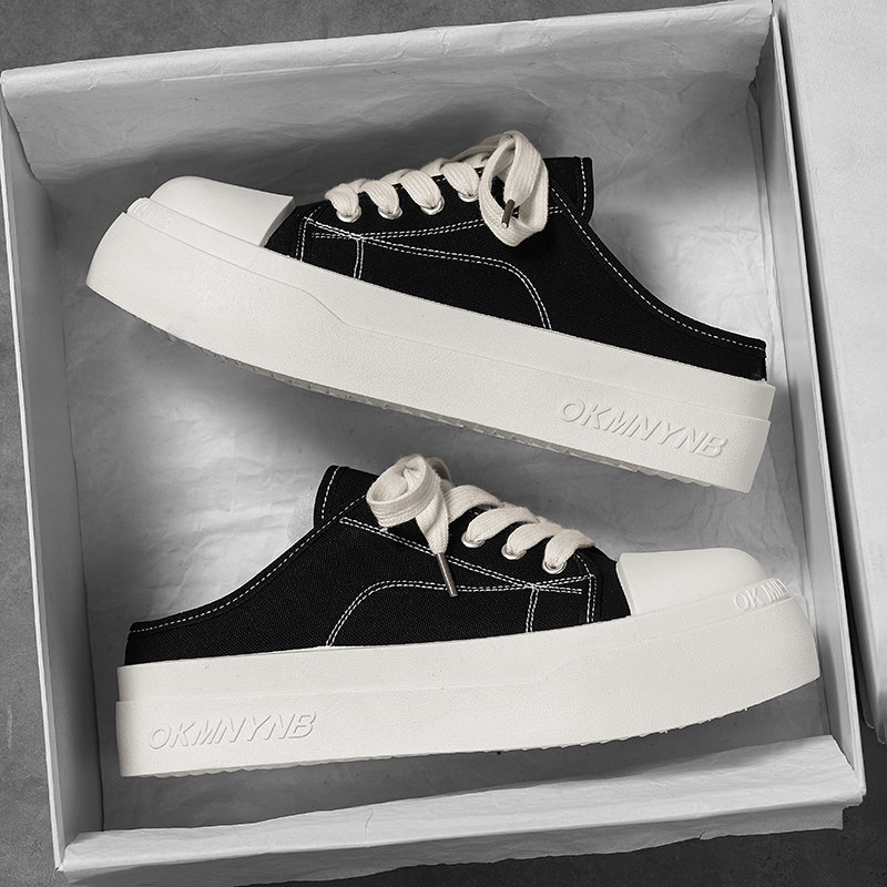 帆布男鞋夏季2026新款外穿高级感休闲运动无后跟懒人一脚蹬包头拖