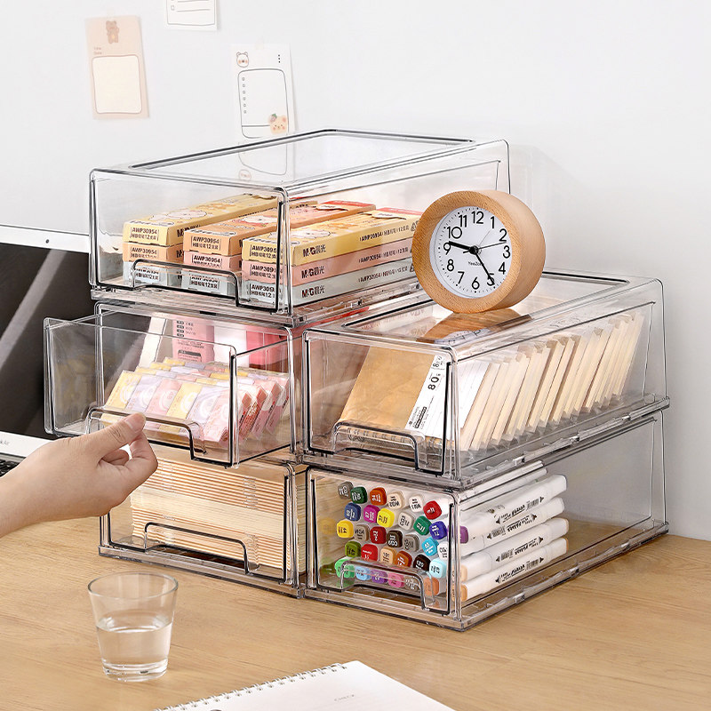 透明桌面收纳盒抽屉式大容量整理盒化妆品面膜杂物学生书桌收纳箱