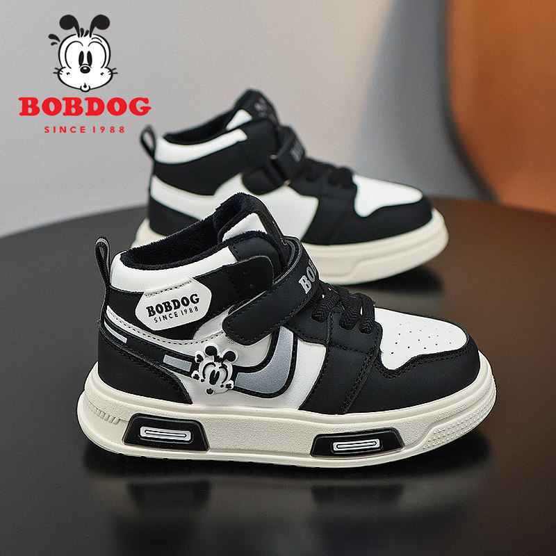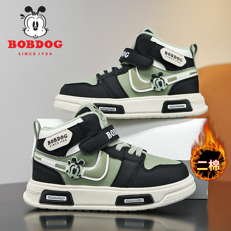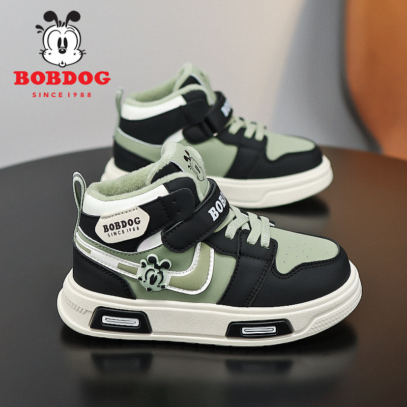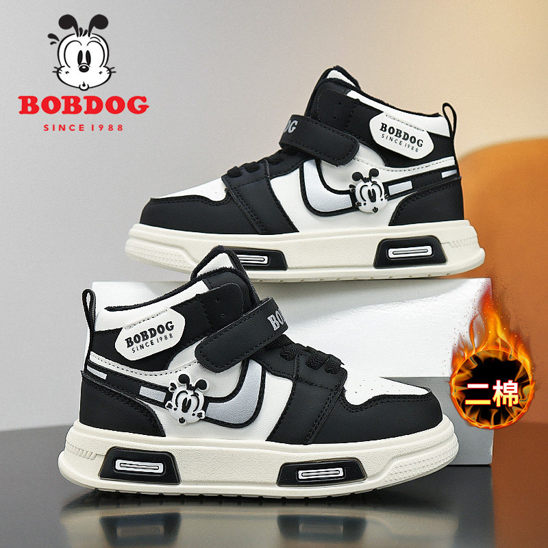 巴布豆男童板鞋2025秋冬季新款加绒保暖二棉鞋高帮男孩儿童运动鞋