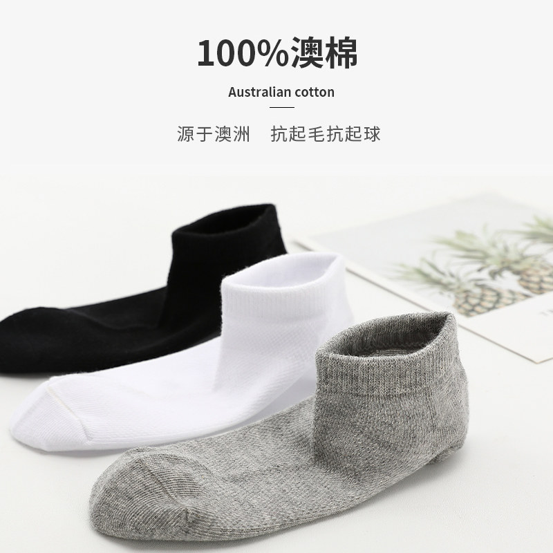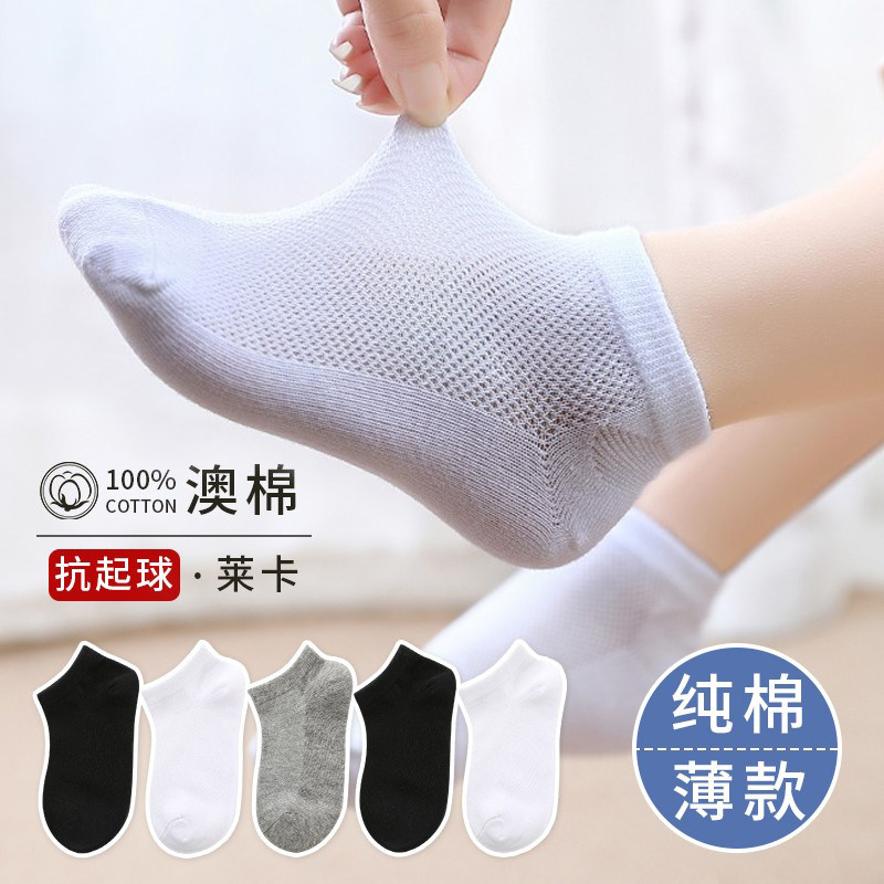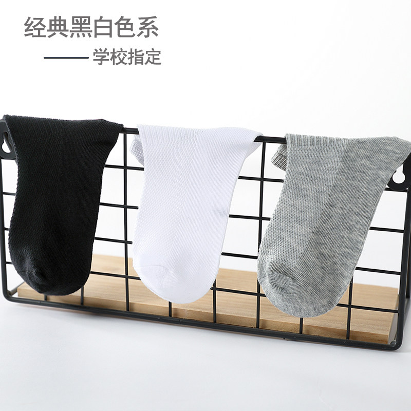 儿童袜子夏季薄款中大童棉袜网眼透气学生运动黑白色男童女童短袜