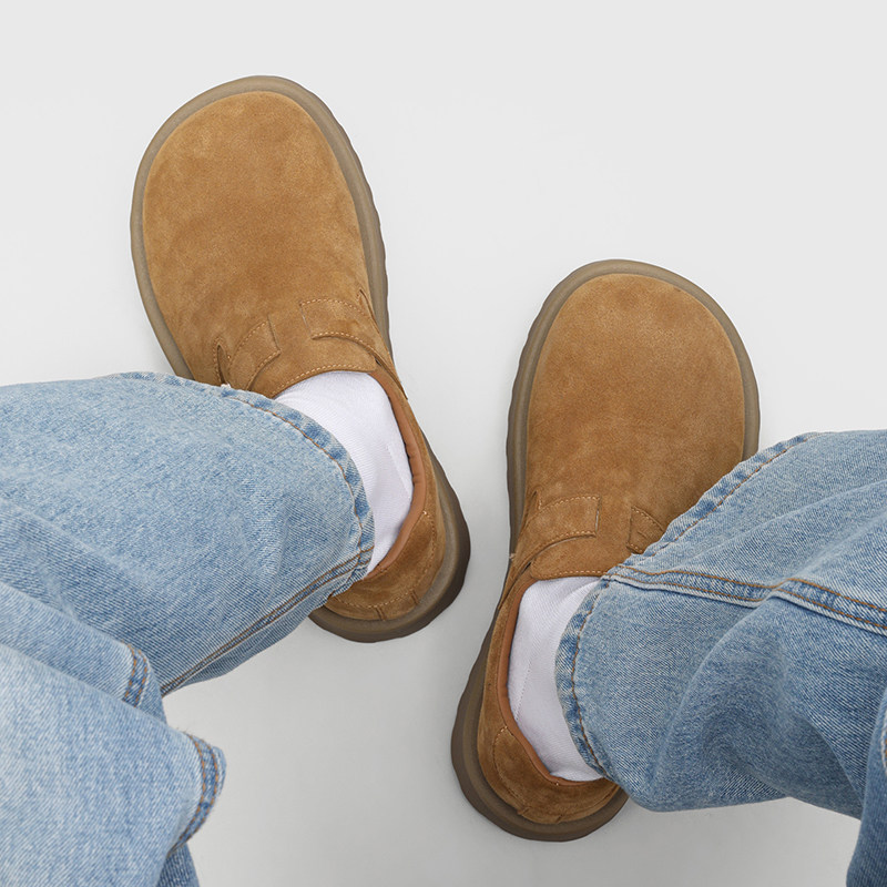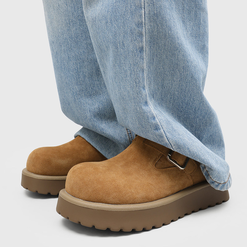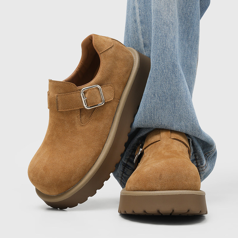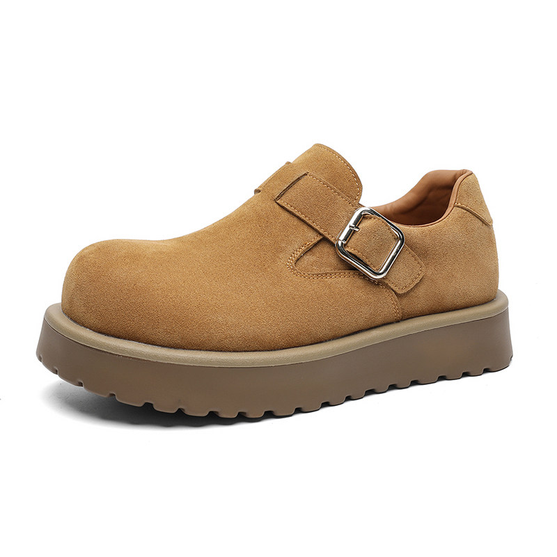 老钱风复古勃肯鞋男真皮厚底一脚蹬大头乐福鞋增高全包通勤穆勒鞋