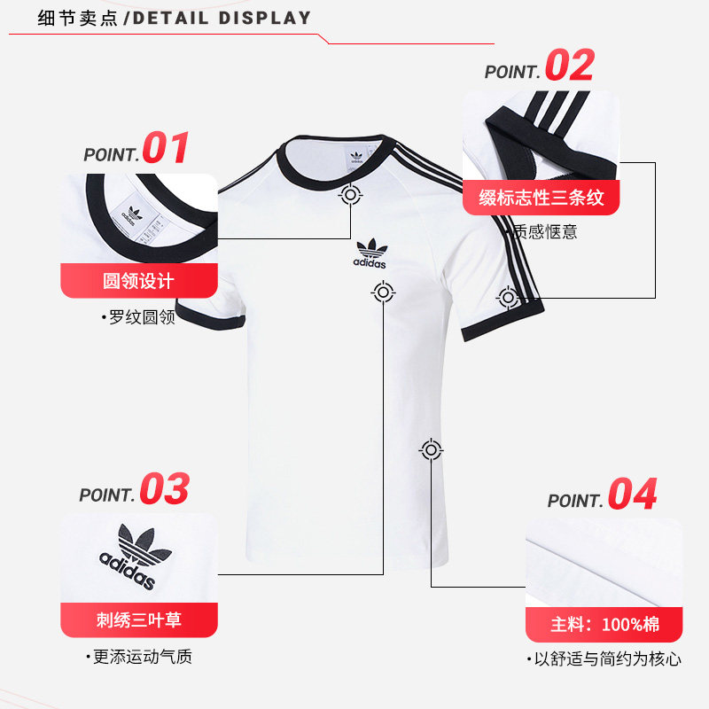 阿迪达斯短袖男女同款2026年夏季新款修身纯棉休闲运动T恤KB2460